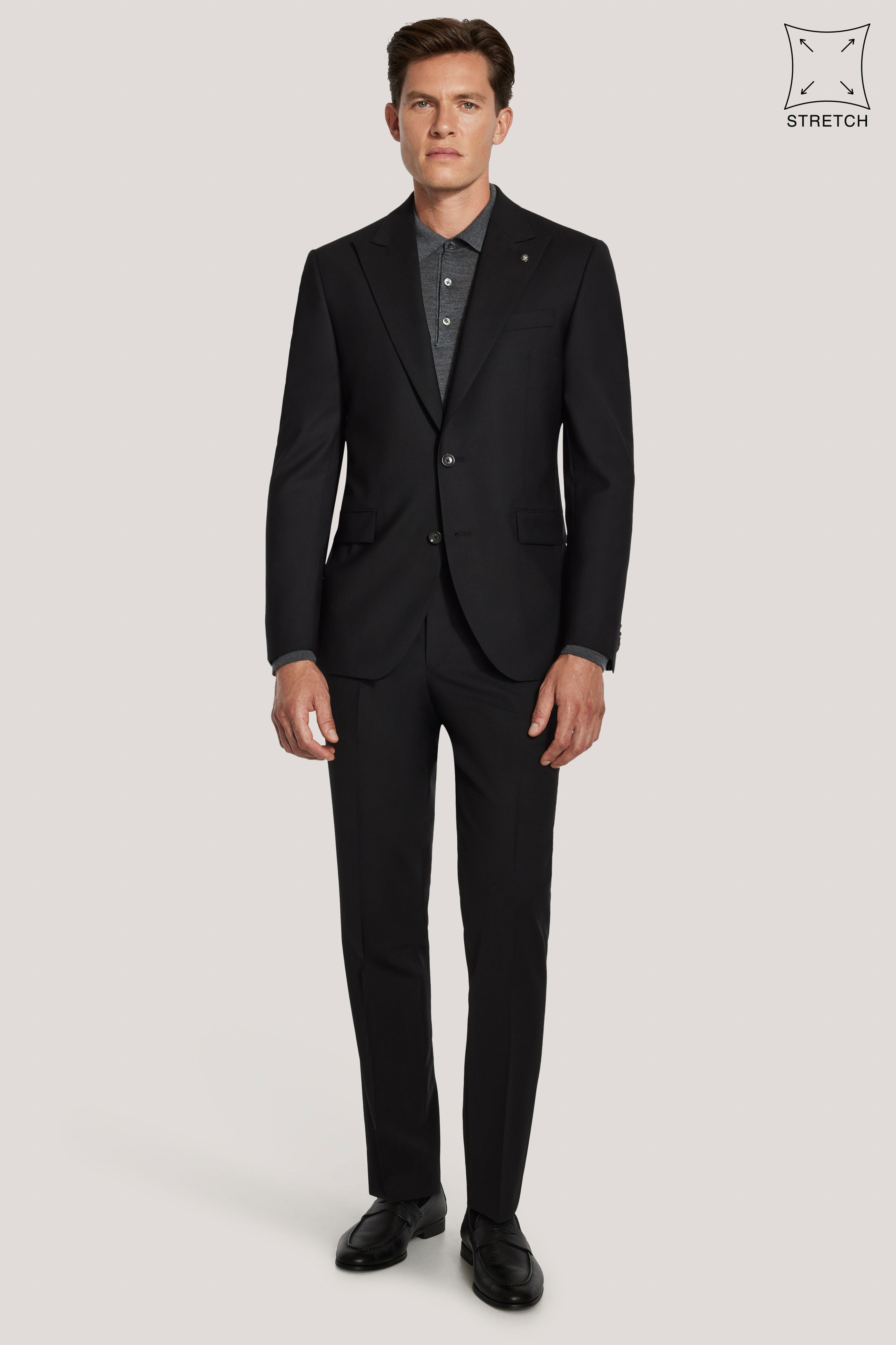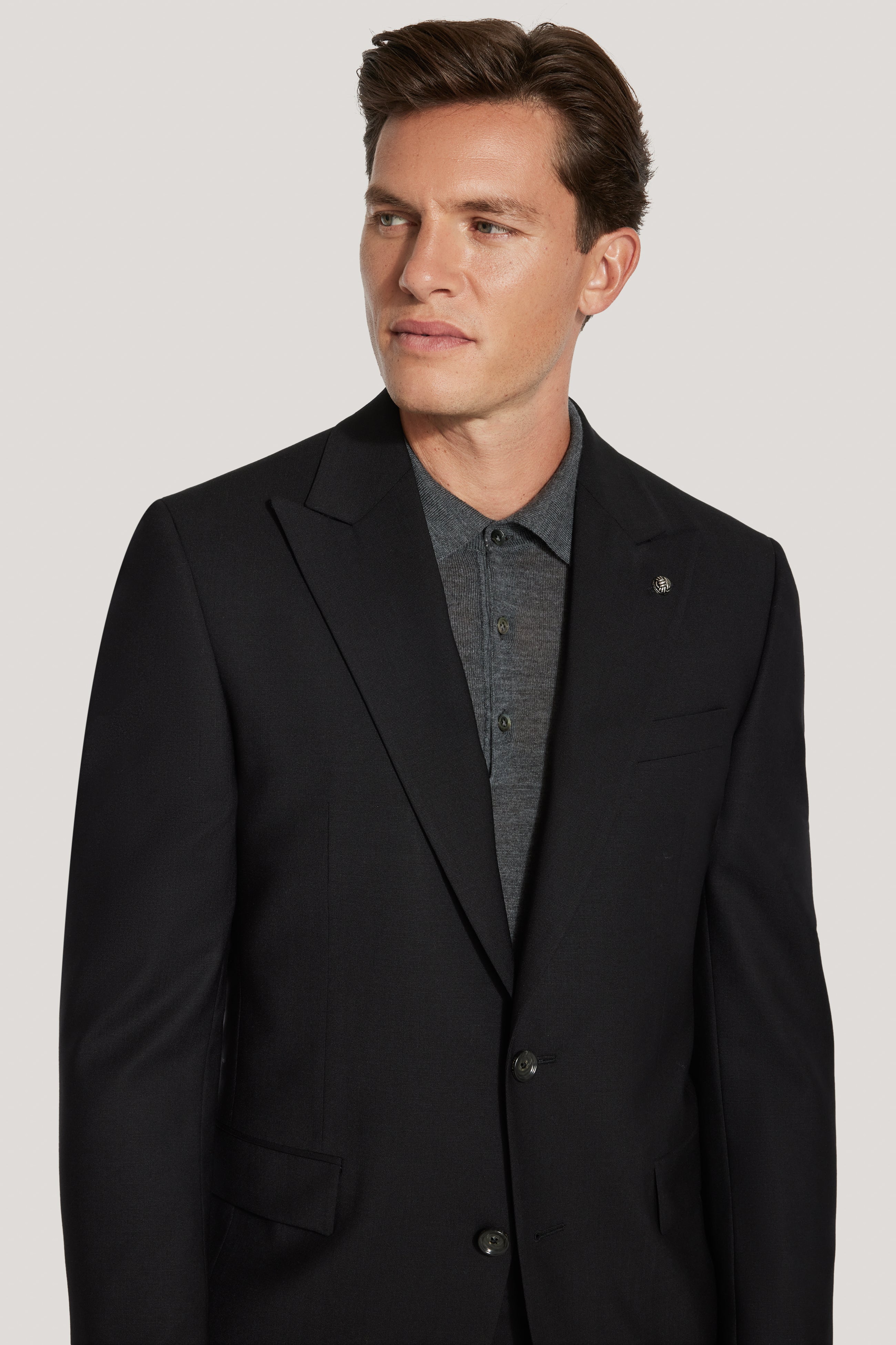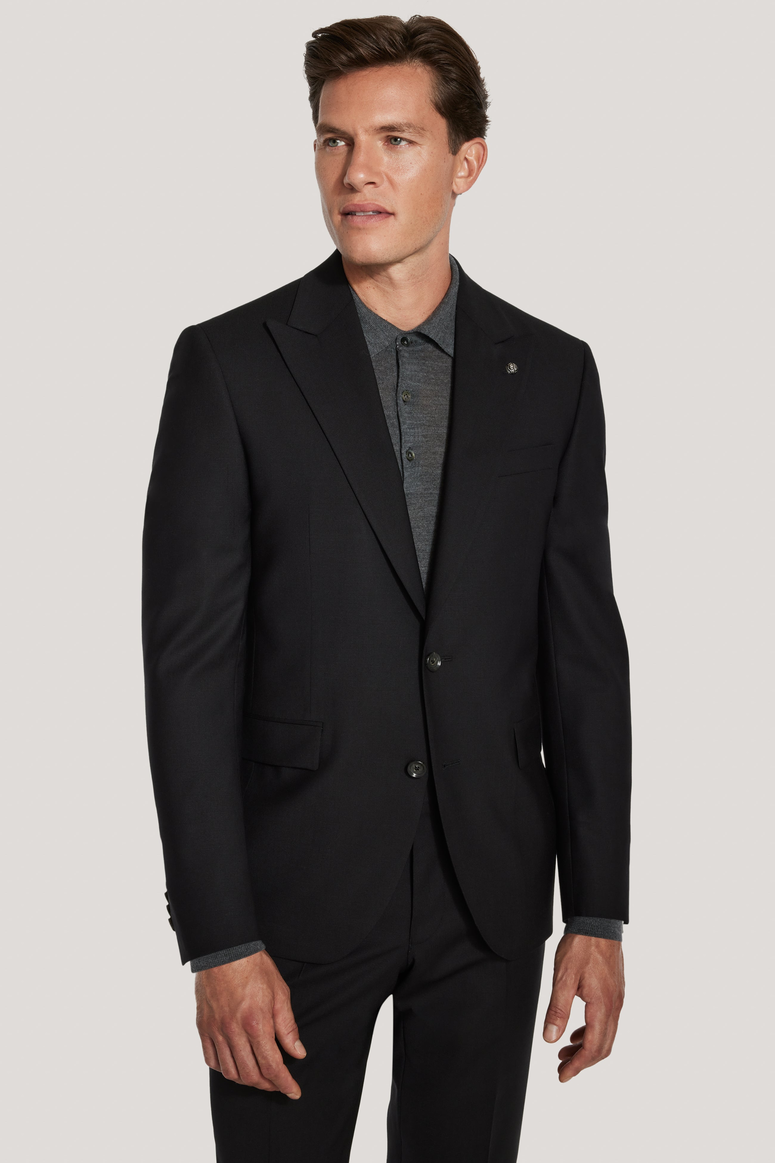Issu de la collection TEMPO, ce costume noir est confectionné selon le modèle Engel, offrant un équilibre raffiné entre confort et structure. Confectionné en 98 % laine et 2 % lycra. Tissé en mélange de bengaline, il offre une légère élasticité pour une liberté de mouvement optimale et un confort optimal tout au long de la journée. Cette veste droite à deux boutons présente un revers en pointe, des poches basses à rabat, une poche poitrine passepoilée supérieure et des poches intérieures. Sa confection douce et sa doublure intérieure complètent sa silhouette moderne et raffinée. Idéal pour les occasions professionnelles comme formelles, ce costume allie style intemporel et confort au quotidien.