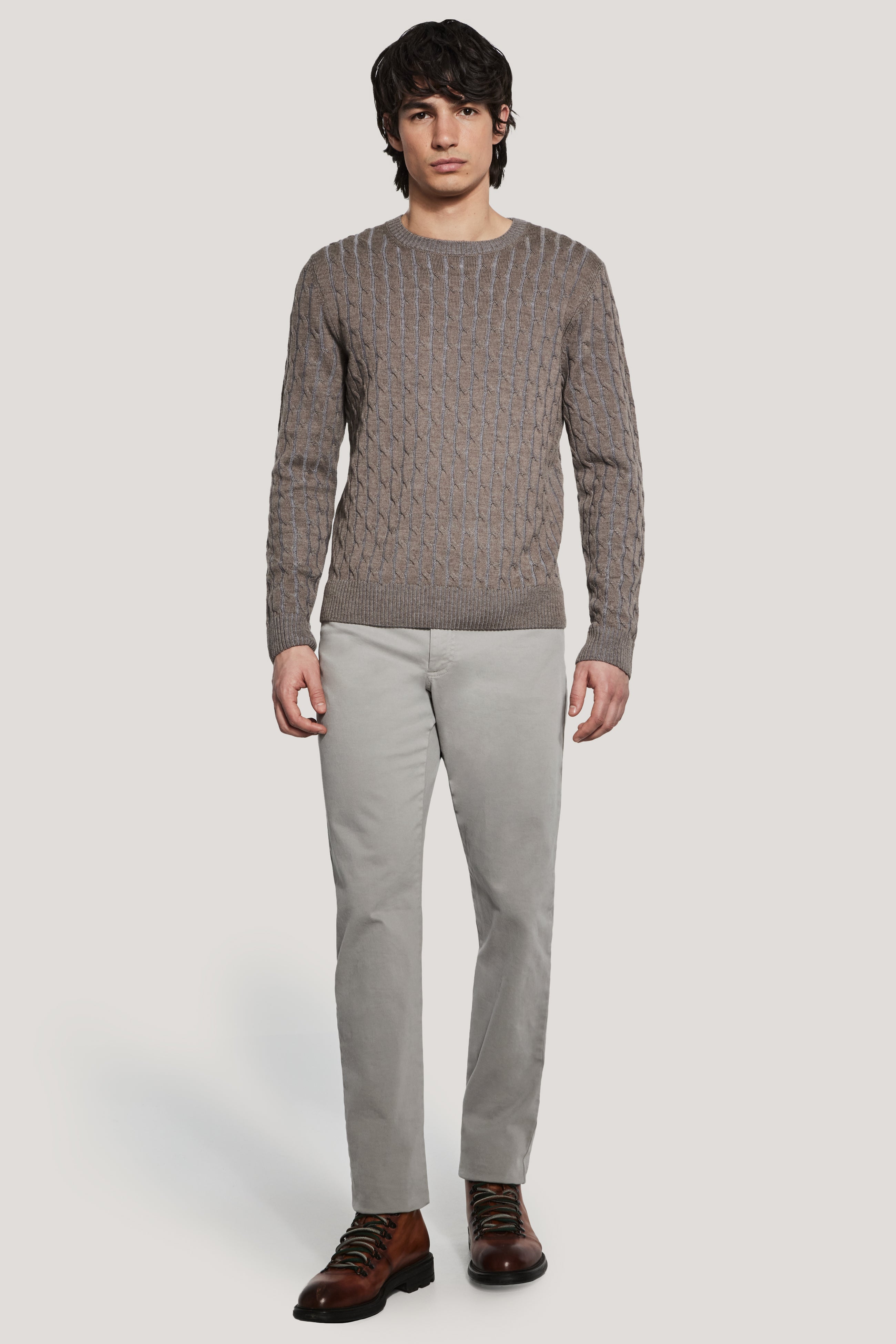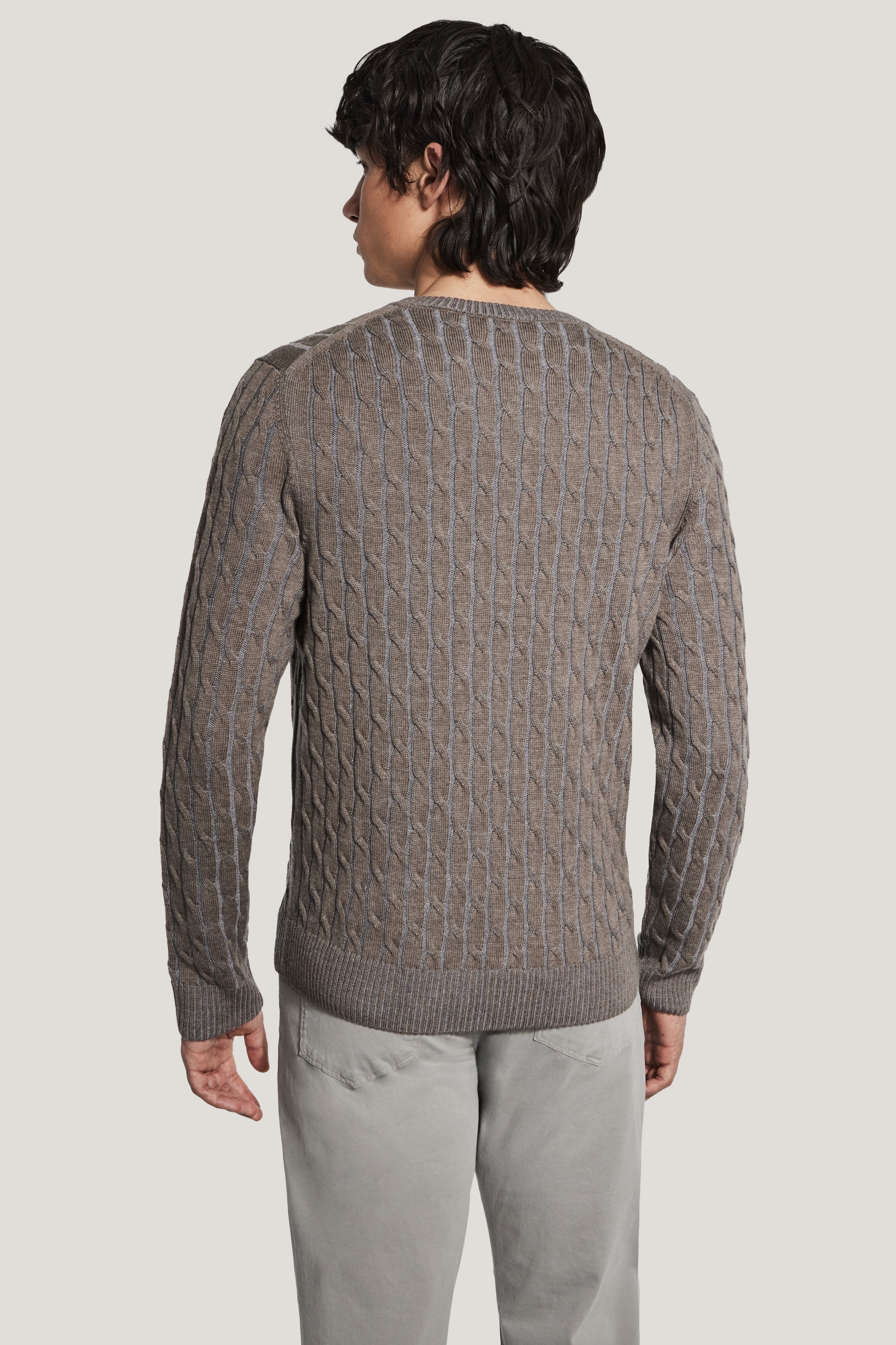 Ce pull en laine mérinos torsadée est réalisé selon la technique du vanisé, créant un subtil jeu de couleurs et de textures pour un look riche et dimensionnel. Son motif torsadé moderne et élégant ajoute une touche de sophistication, tandis que l'épaule montée sur le devant assure une coupe ajustée et soignée. Polyvalent et raffiné, ce modèle s'adapte à toutes les tenues, qu'elles soient habillées ou décontractées, et s'intègre parfaitement à toutes les garde-robes.
