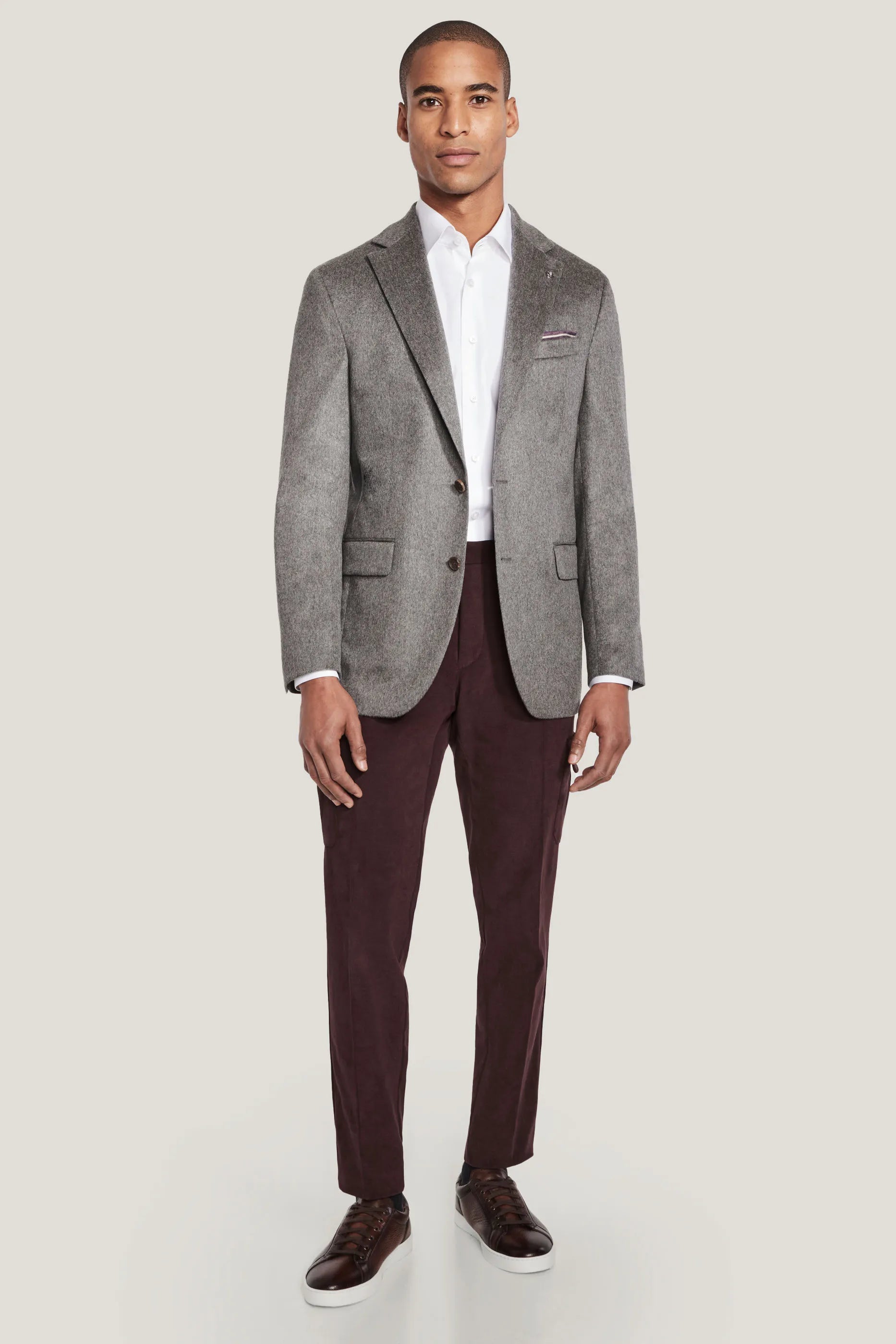 Le blazer uni David gris clair est confectionné en cachemire pur à Montréal. Il est entièrement déstructuré et présente une coupe moderne. L'élégance du cachemire et le confort du modèle David en font une pièce exquise pour la saison d'automne.