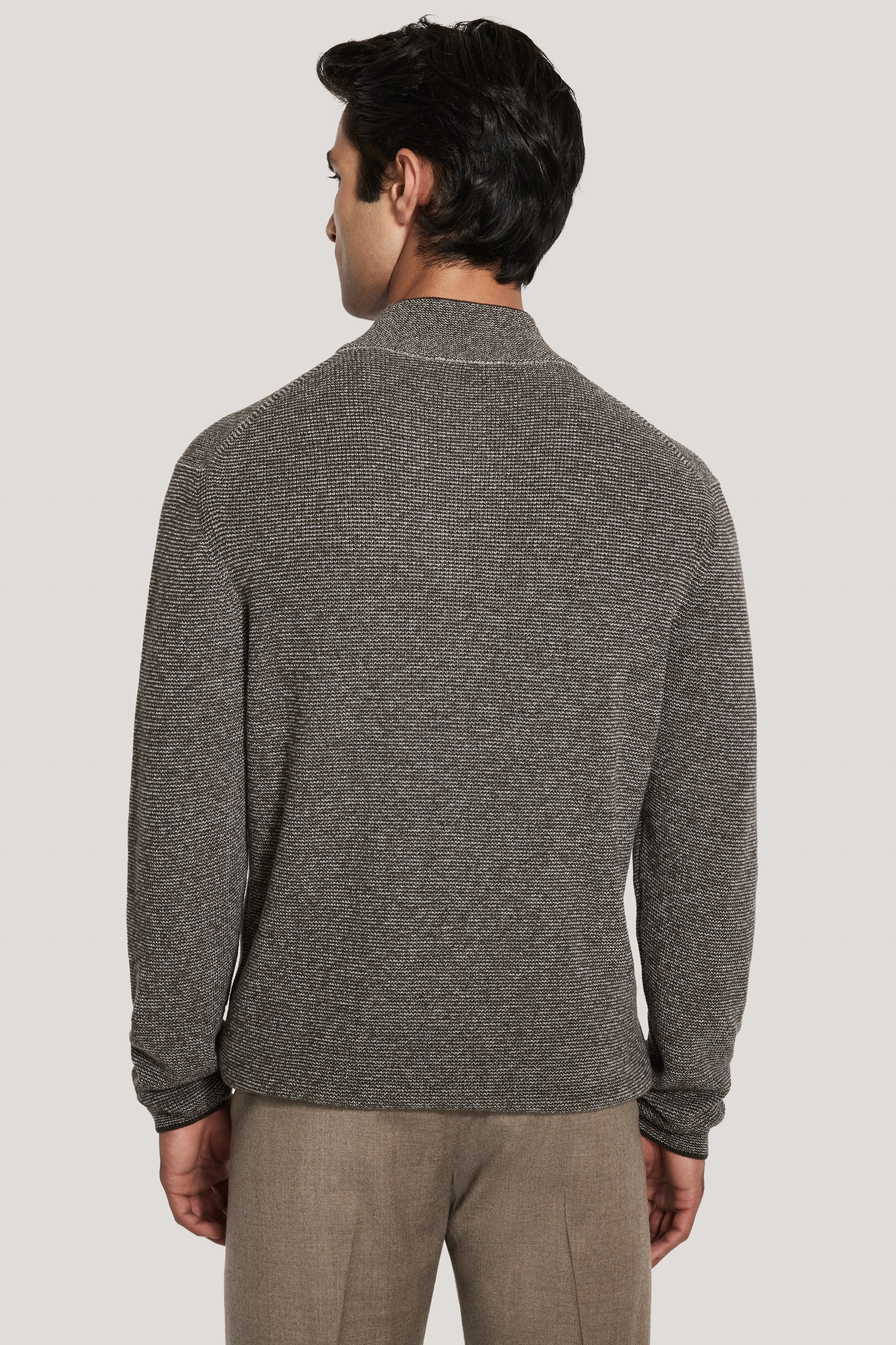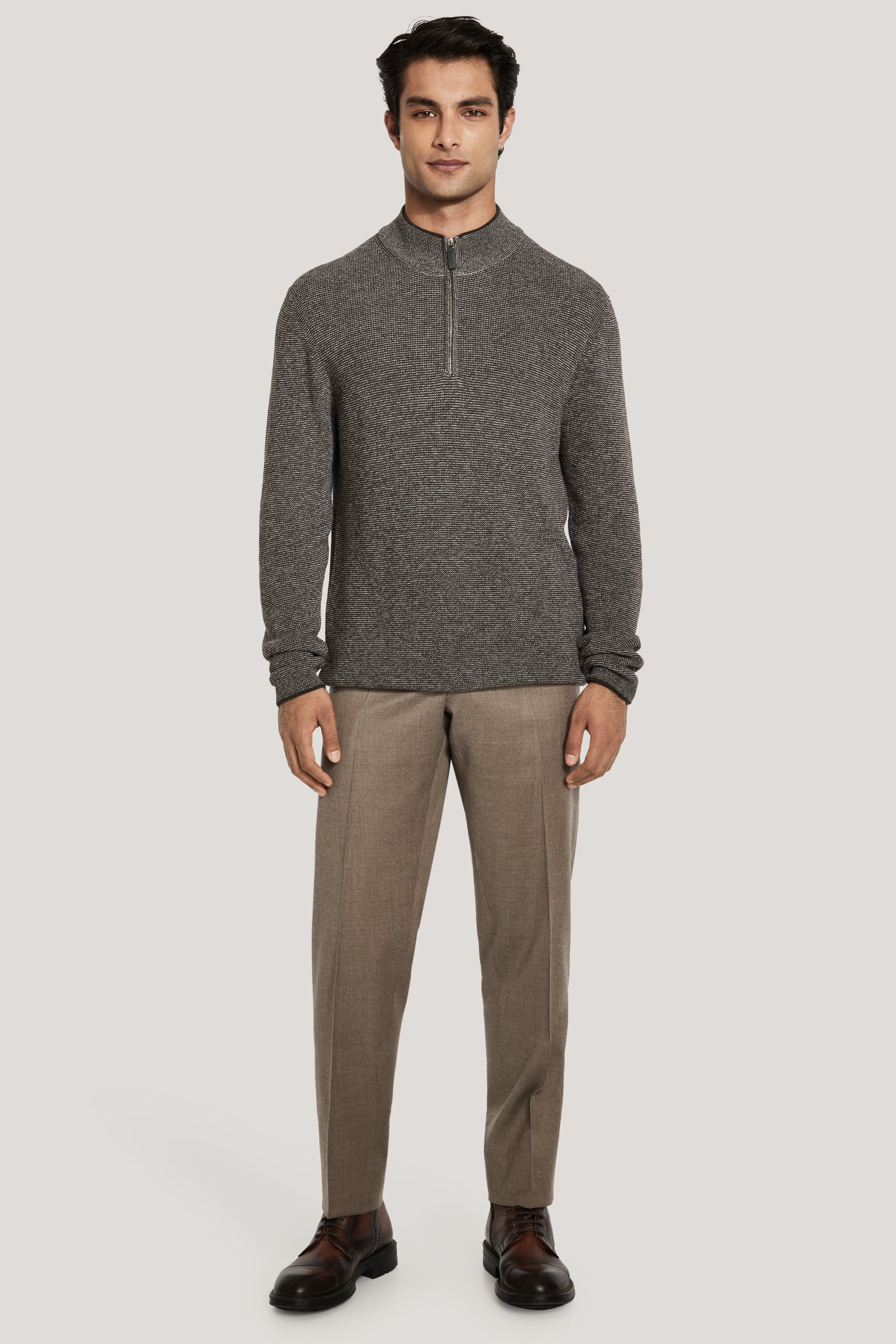Le pull Melange Quarter Zip est confectionné avec soin en Roumanie à partir de fils ultra doux pour un effet tricot texturé. Sa coupe contemporaine est conçue pour être portée sous un blazer ou seule avec un pantalon et constitue la pièce de superposition idéale qui ajoute de la valeur et de la polyvalence à votre garde-robe de transition.