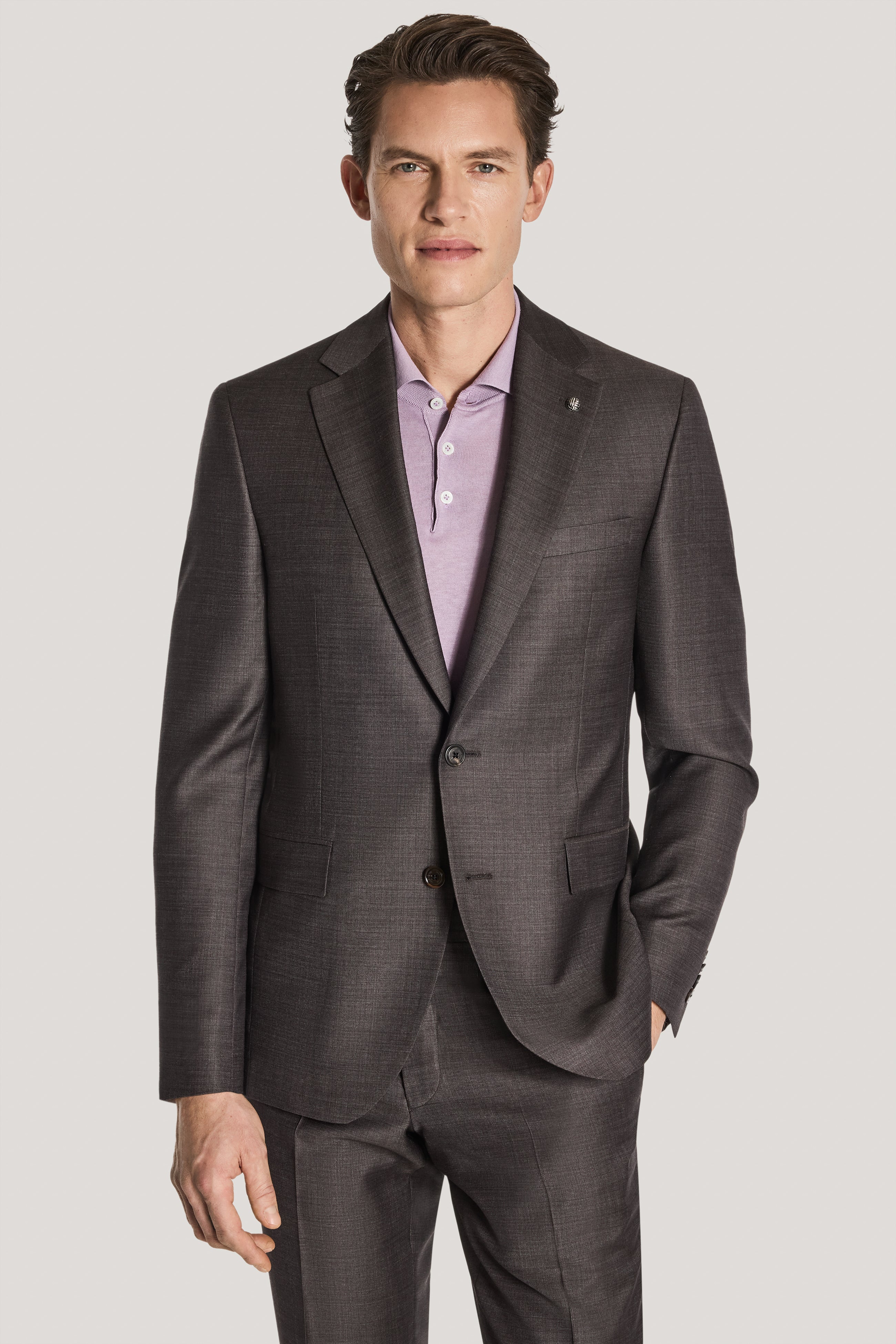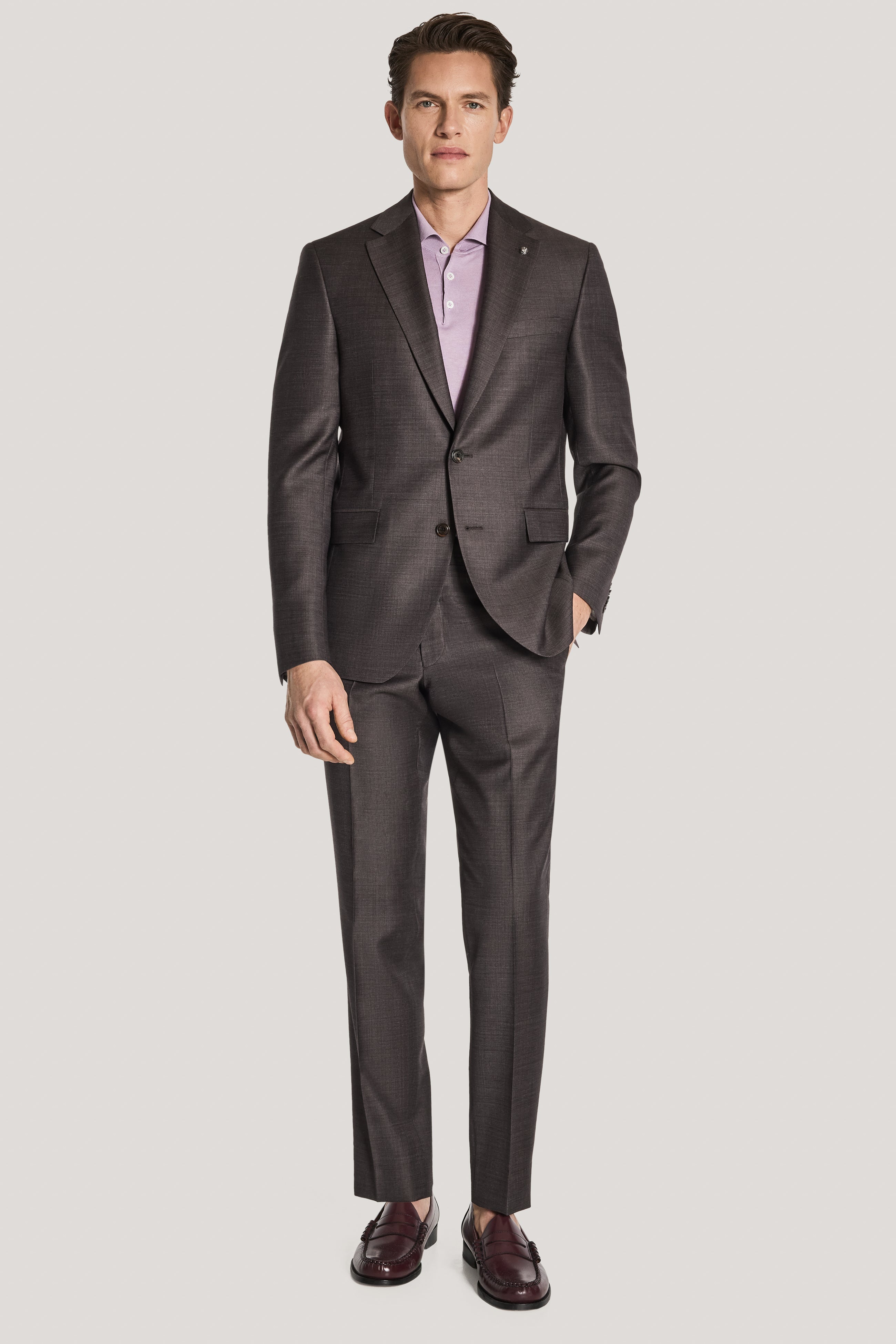 Ce costume marron uni est confectionné en laine Super 130. Léger et doux au toucher, il est idéal pour les beaux jours. Le costume Esprit, à simple boutonnage et deux boutons, est doté d'une veste à revers cranté et de poches à rabat. Sa construction souple et sa doublure intégrale lui confèrent un style intemporel et une performance moderne, parfaits pour toutes les occasions.
