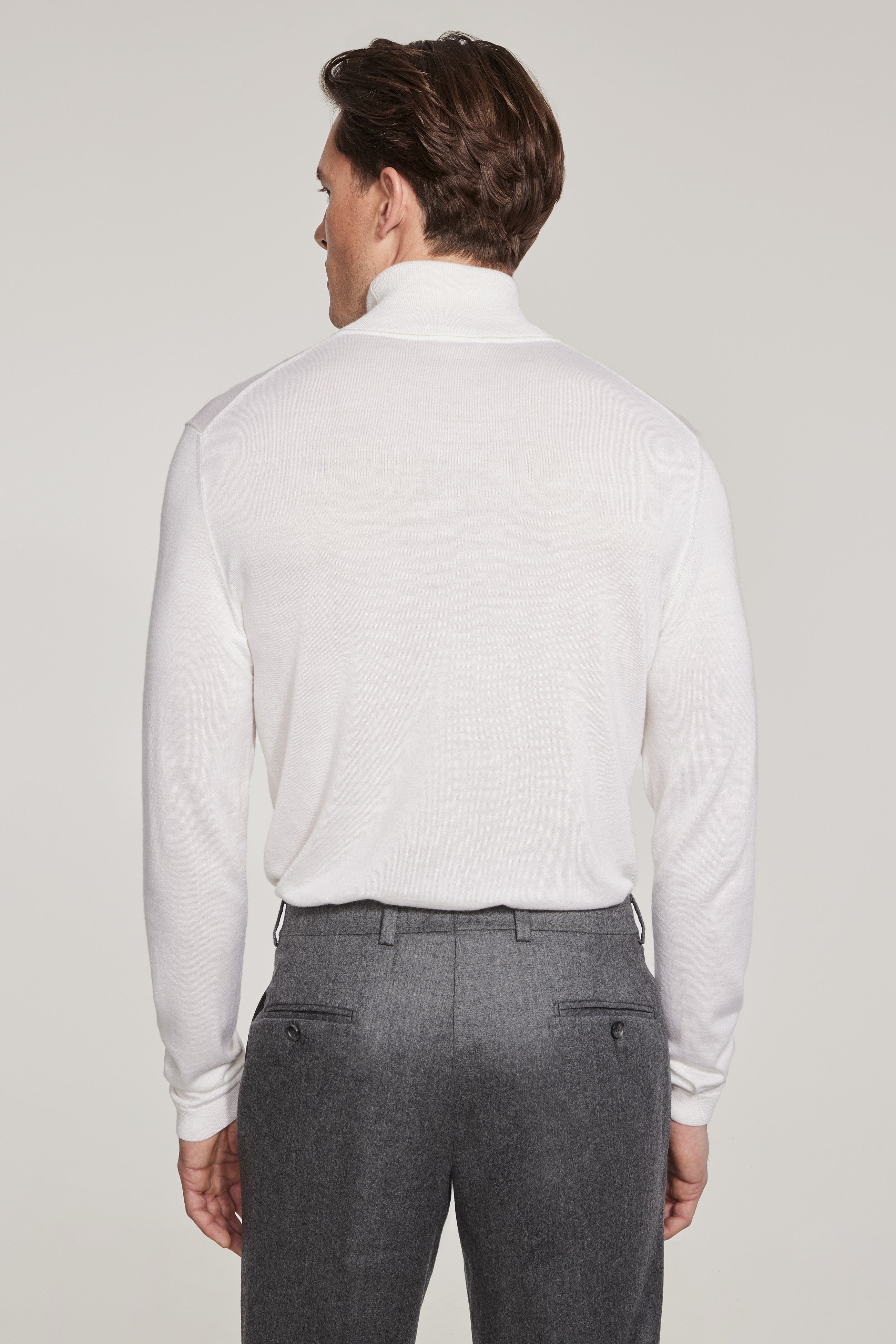 Élevez votre style avec le pull à col roulé Felix. Parfait pour la superposition en automne, ce pull à mailles fines est confectionné dans un luxueux mélange de laine, soie et cachemire. Son élégance classique et sa polyvalence en font un choix idéal sous un blazer ou un smoking, ajoutant sophistication et confort à toute tenue formelle.