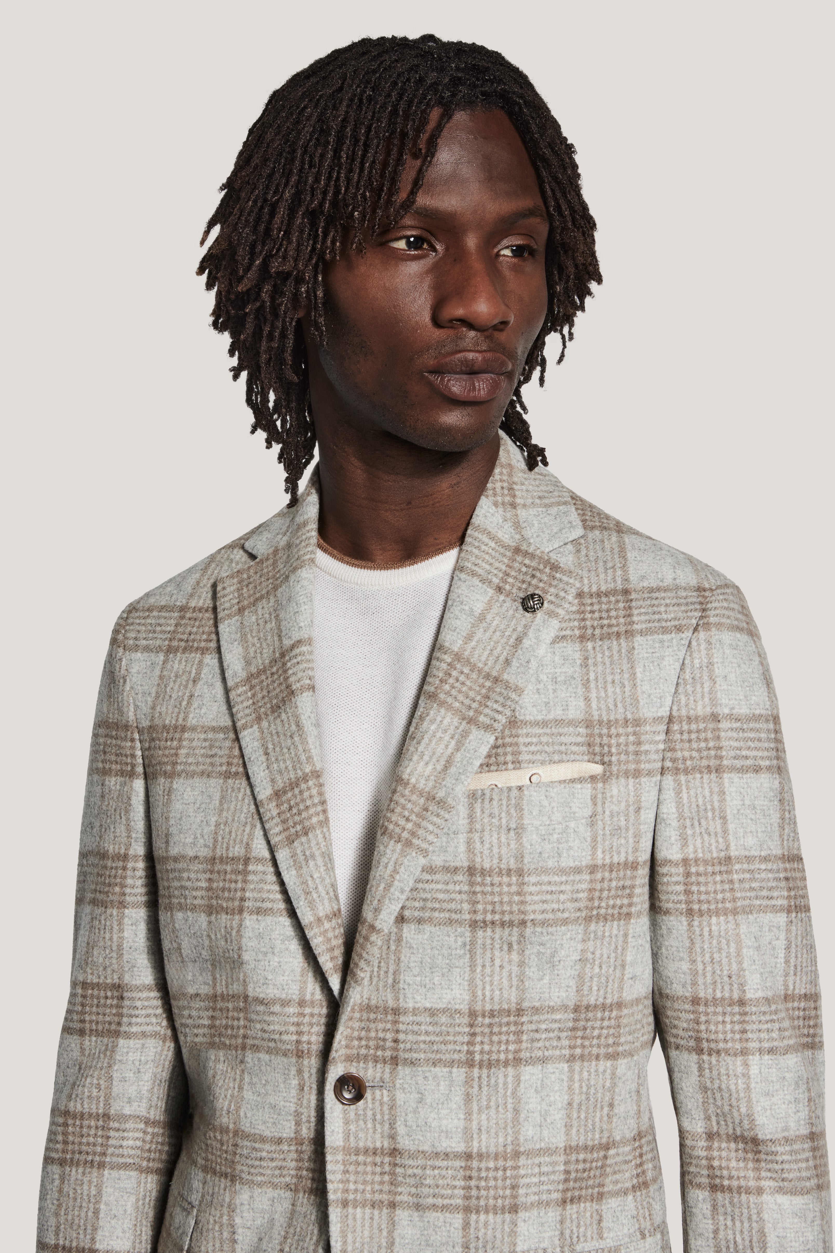 Blazer à carreaux gris clair et camel