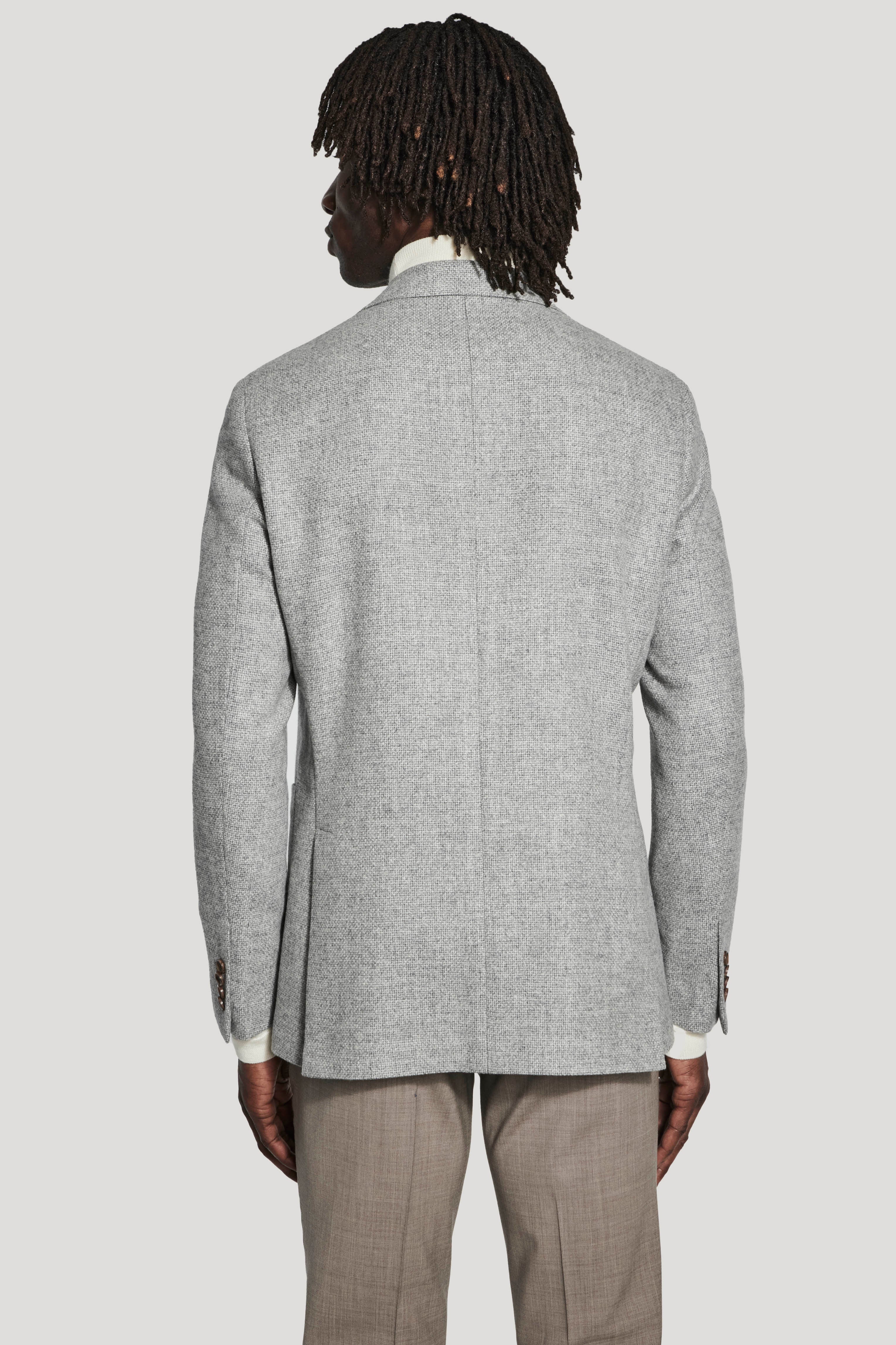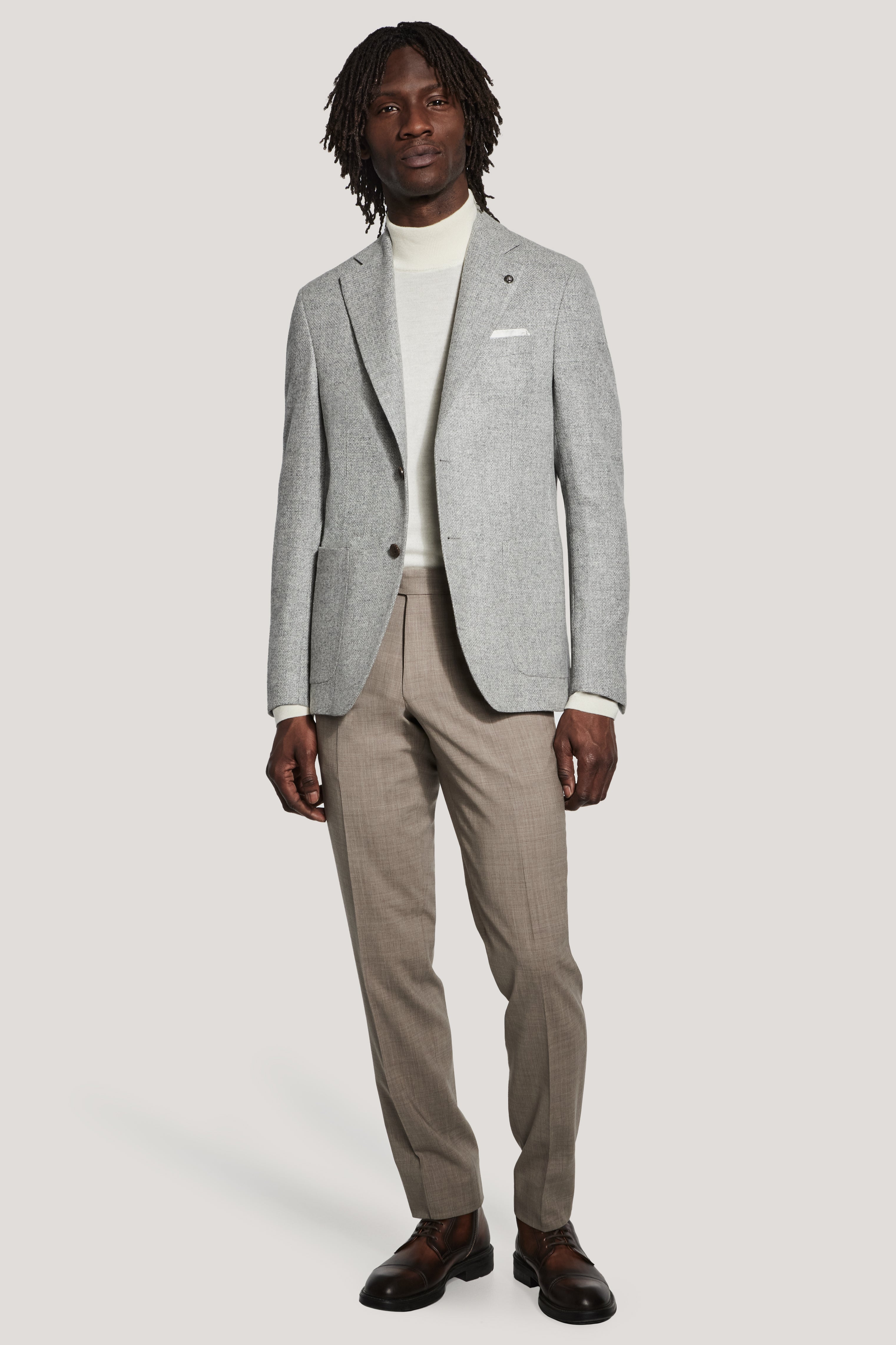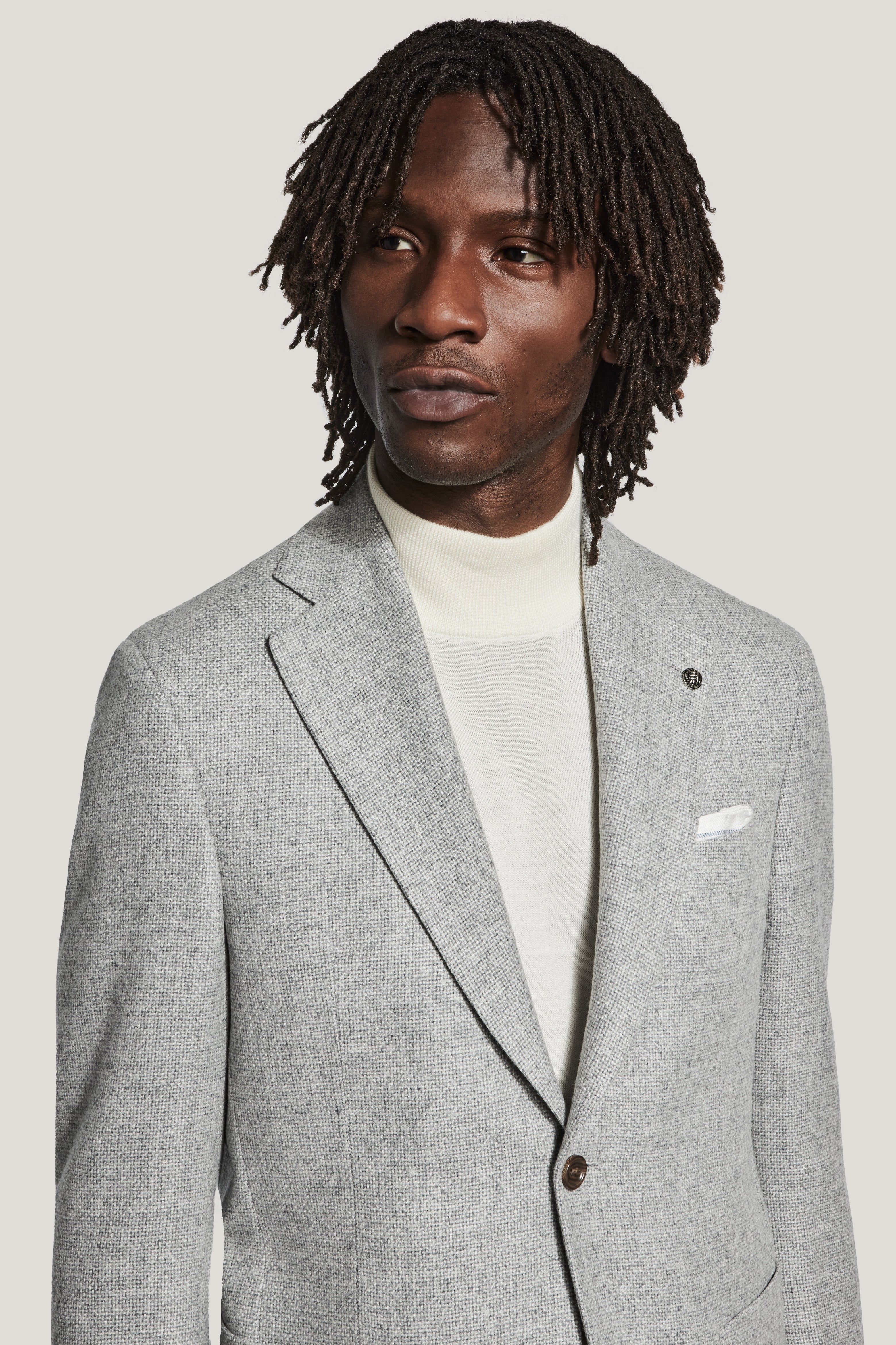 Confectionné dans un luxueux mélange de laine, soie et lin, ce blazer Myles à boutonnage simple et deux boutons arbore une teinte gris clair raffinée, un fil plus épais et un tissage ouvert, créant un look plus lourd, idéal pour les transitions du début de l'automne. Conçu dans un style sartorial pour un drapé élégant et naturel, sa coupe non structurée et son intérieur semi-doublé assurent respirabilité et confort. Le revers cranté, les poches plaquées inférieures, la poche poitrine passepoilée supérieure et les poches intérieures allient style et fonctionnalité, tandis que les manches insérées ornées de fines surpiqûres soulignent le savoir-faire artisanal. Une pièce intemporelle à superposer, parfaite pour une tenue de saison sophistiquée.