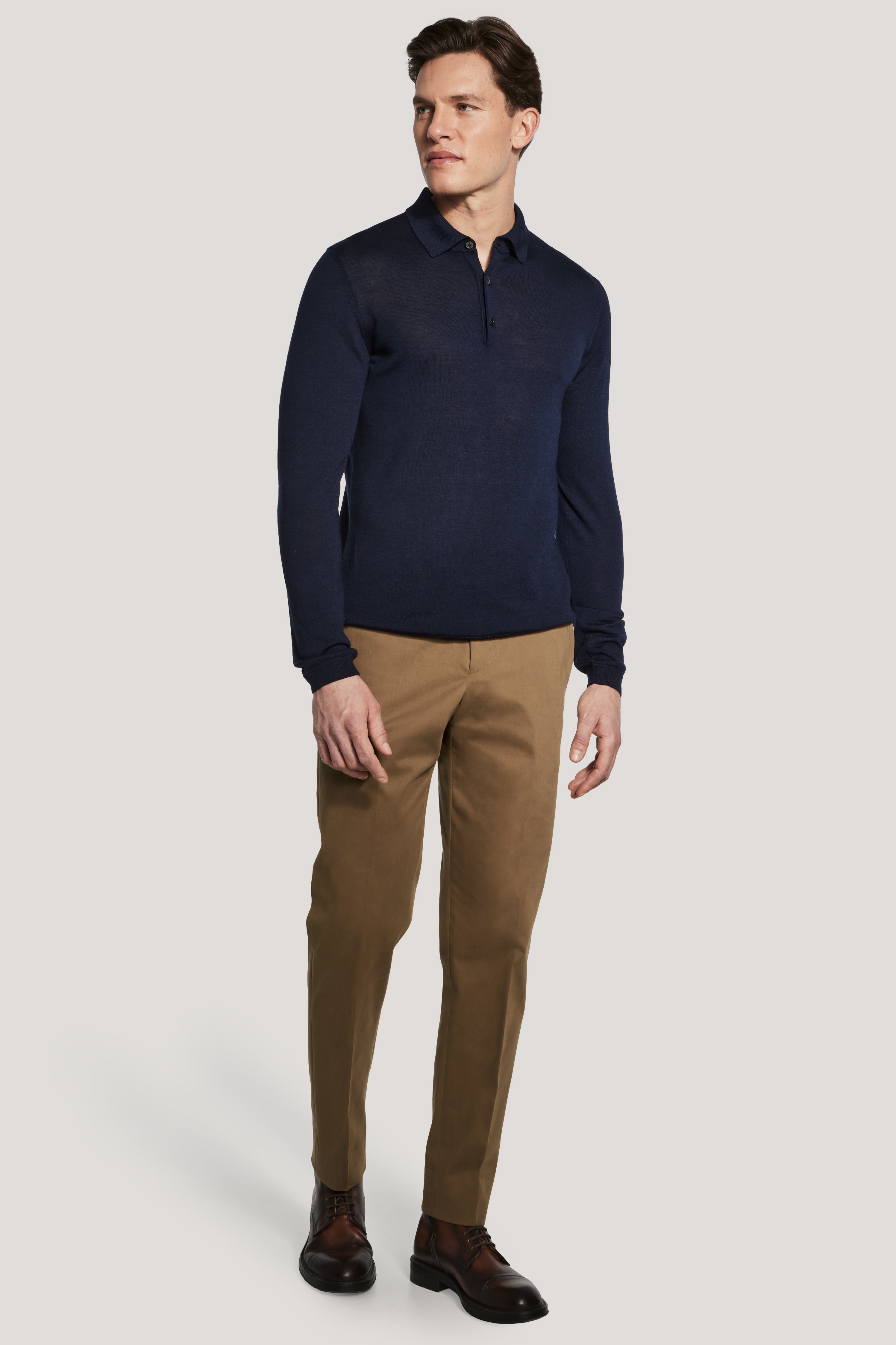 Ce polo à manches longues est confectionné dans une maille légère de calibre 14, entièrement façonnée, douce au toucher et respirante pour un confort optimal tout au long de la journée. Doté d'épaules montées pour une silhouette ajustée et épurée, il présente un poignet et un ourlet de 3 cm pour une finition subtile et raffinée. Parfait à superposer ou à porter seul, ce polo allie sophistication moderne et aisance décontractée.