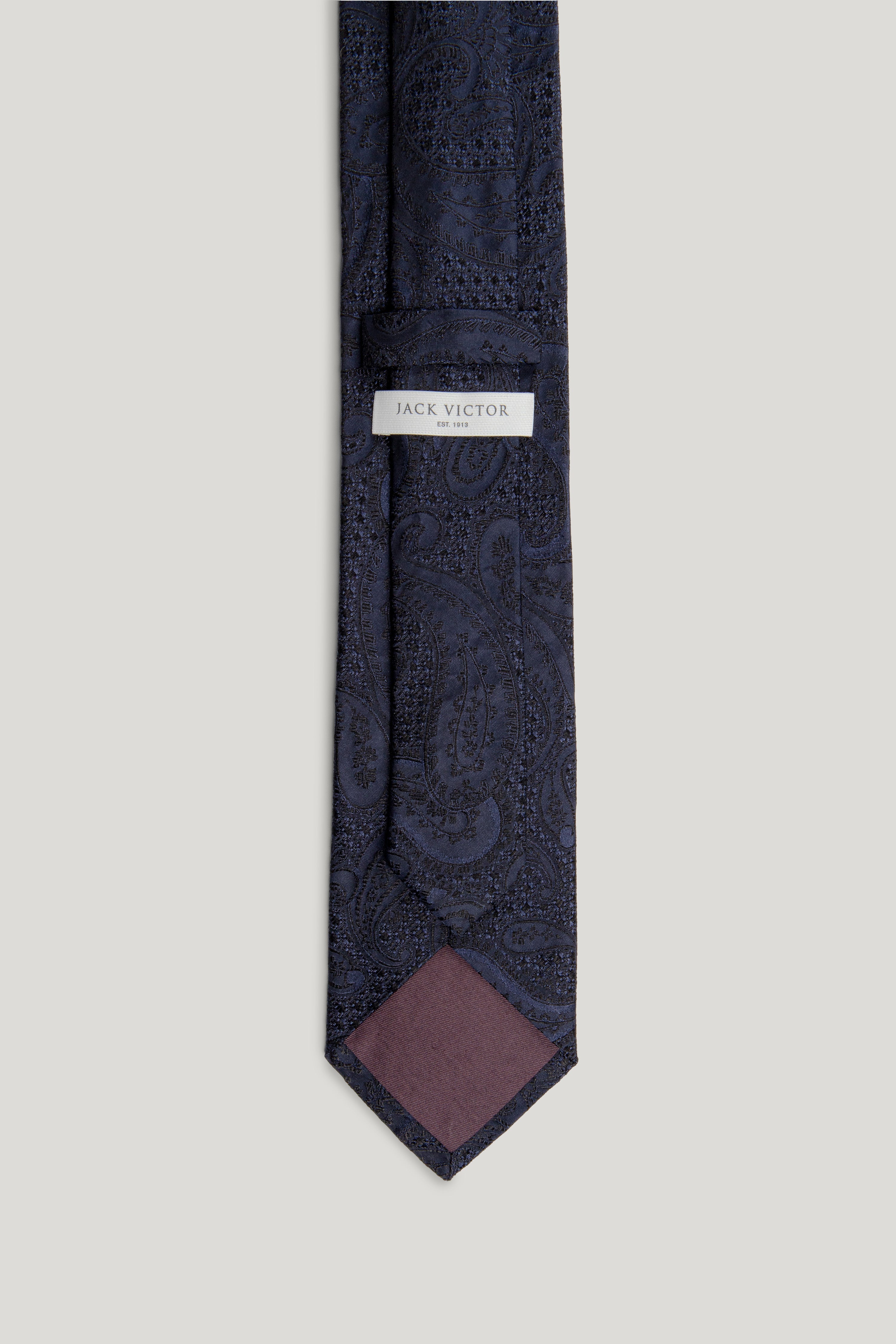 La cravate Paisley présente un motif cachemire ton sur ton et est tissée à Eboli, en Italie, à partir d'une soie très luxueuse. Le design subtil à pois rehausse n'importe quelle tenue et s'associe parfaitement à votre blazer, smoking ou smoking préféré. La cravate comporte un passant dans le même tissu et des nœuds d'investissement finis à la main. Le tissu de bordure est le bordeaux signature Jack Victor.