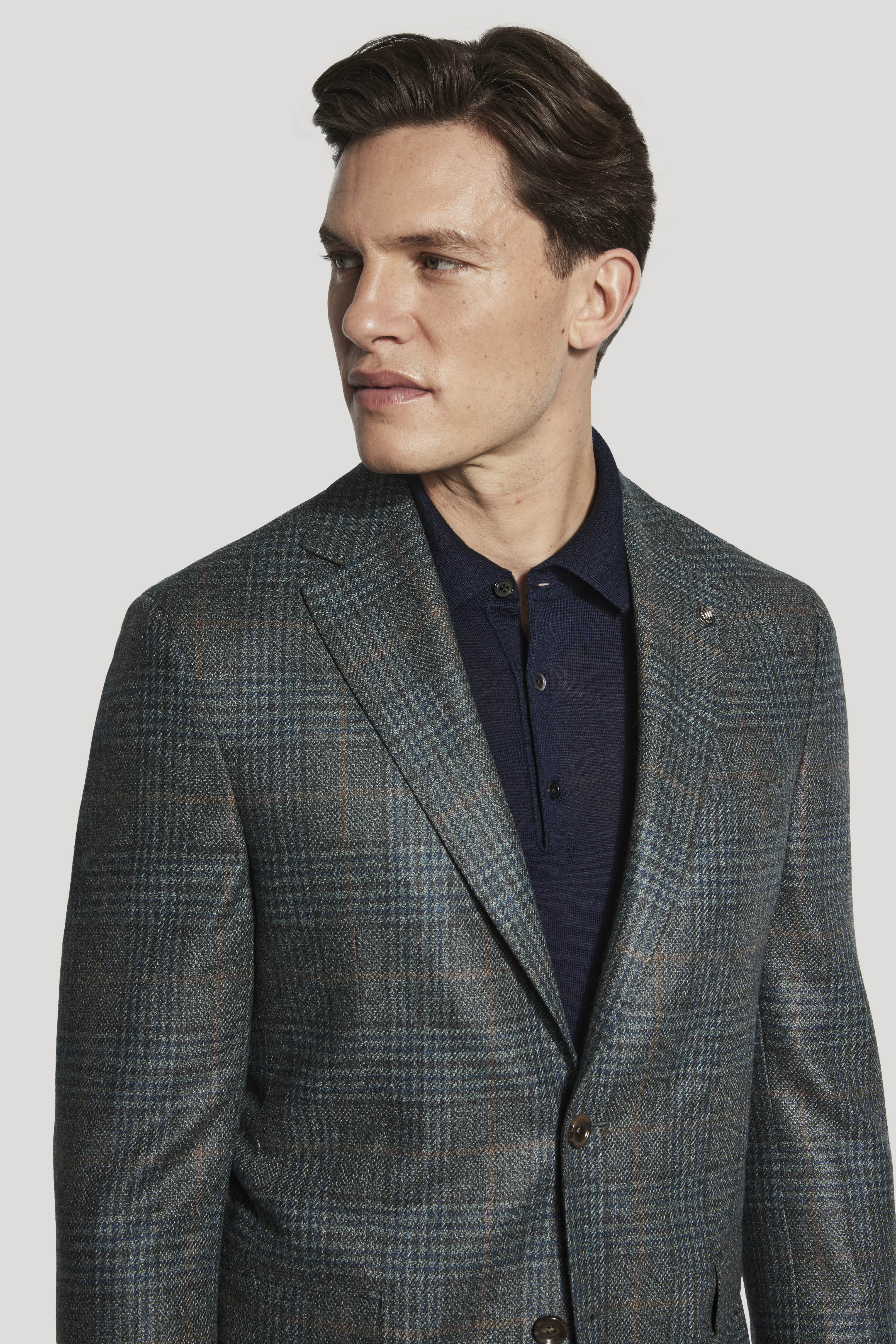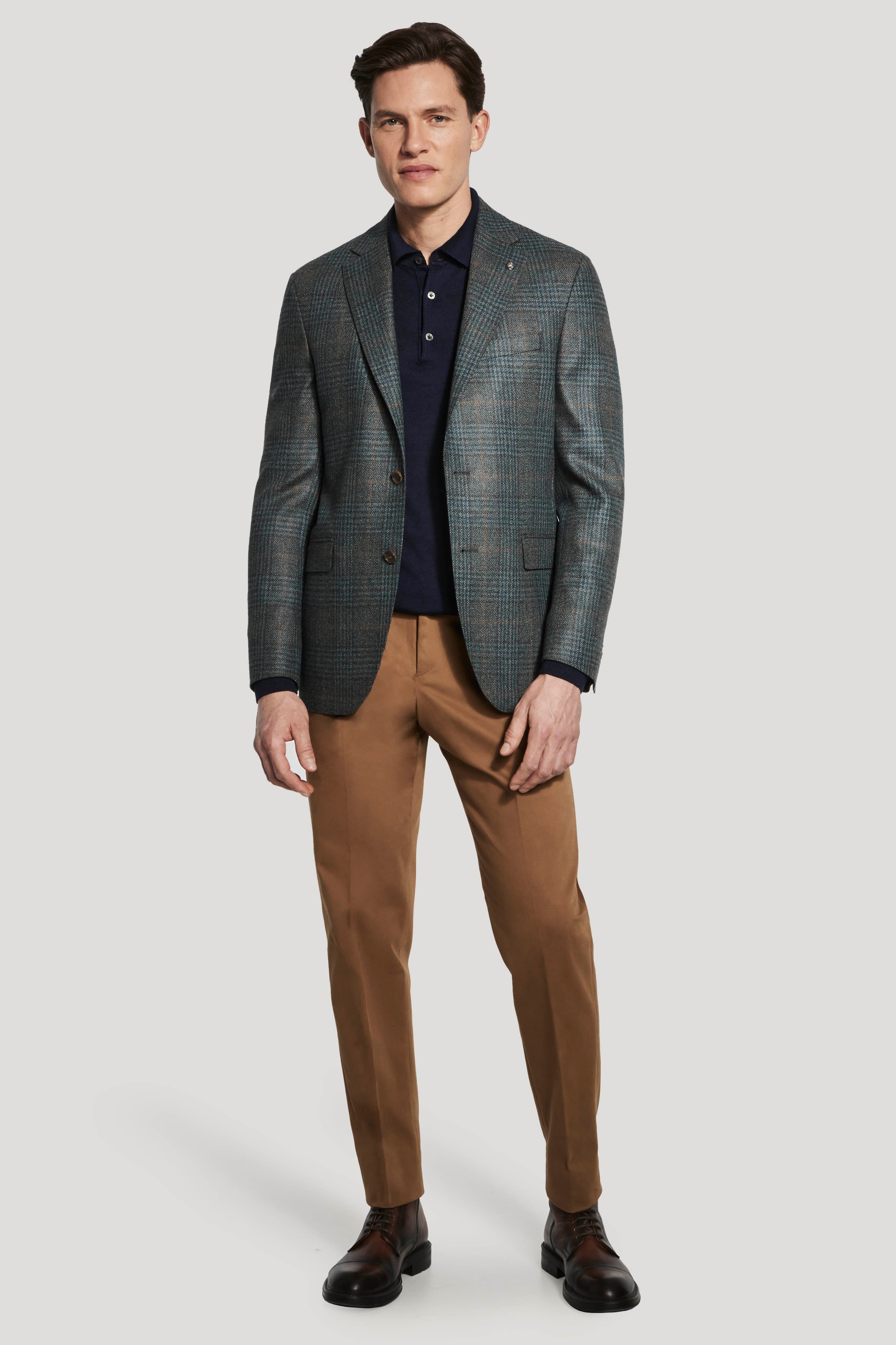 Confectionné dans un mélange raffiné de laine et de soie, ce blazer McAllen à boutonnage simple et deux boutons arbore un motif écossais sophistiqué vert, bleu sarcelle et marron. Son aspect plus lourd et son fil plus épais lui confèrent texture et chaleur. Conçu pour les superpositions décontractées cet automne, sa construction souple et non structurée offre une coupe décontractée et soignée, tandis que son intérieur semi-doublé assure respirabilité et confort. Des détails classiques comme le revers cranté, les poches basses à rabat, la poche poitrine passepoilée supérieure et les poches intérieures rehaussent style et fonctionnalité. Doté de manches insérées et de fines surpiqûres, ce blazer allie parfaitement savoir-faire et style saisonnier décontracté.