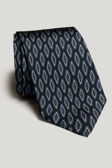 Cette cravate géométrique audacieuse témoigne du savoir-faire italien et du souci du détail des artisans italiens. Accessoire polyvalent, elle s'associe facilement à un costume uni ou à rayures, ce qui en fait un choix impeccable.