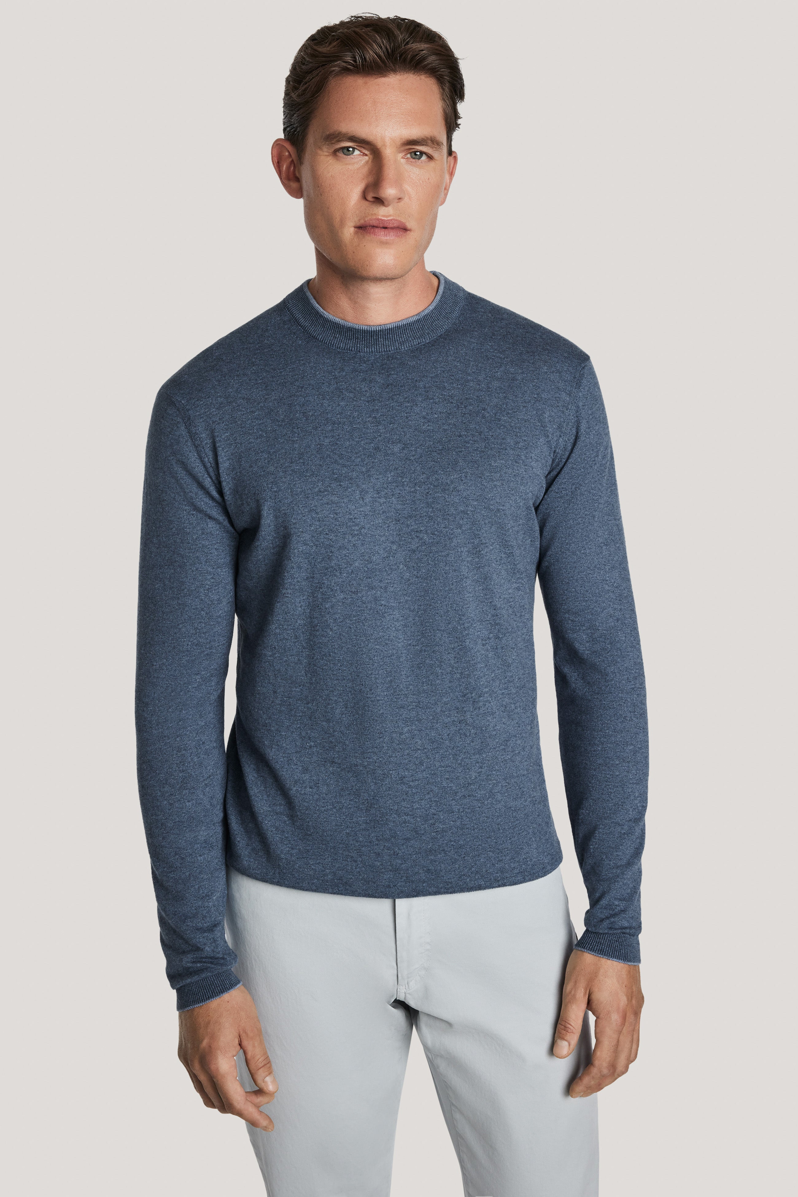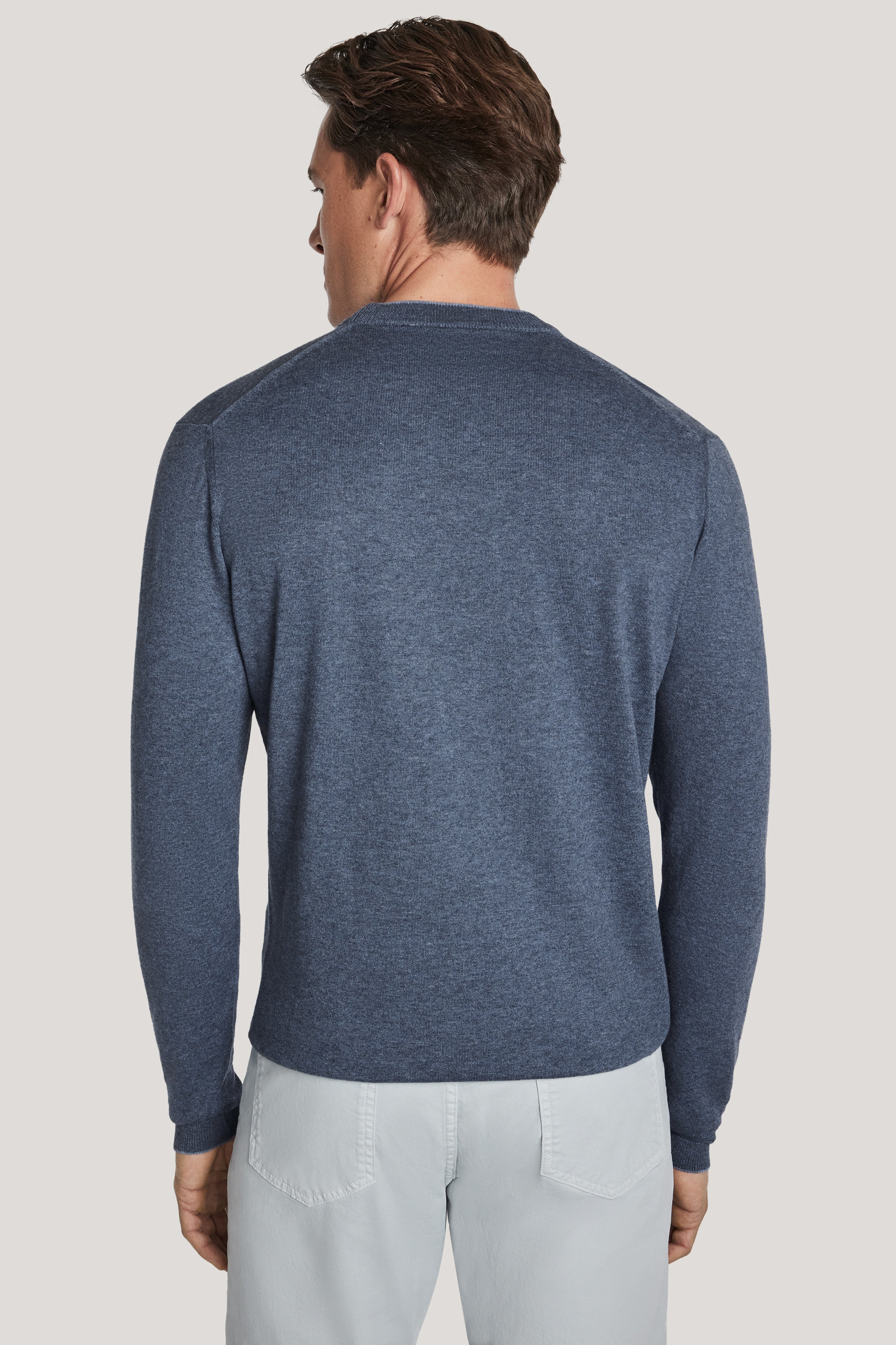 The timeless style and unmatched comfort of the long sleeve crew, crafted from premium combed cotton for a luxuriously soft, zero-pill finish. Featuring contrast tipping for a refined touch, a classic crew neck collar, and a 14 gauge knit for lightweight warmth, this sweater is versatile as it is elegant.