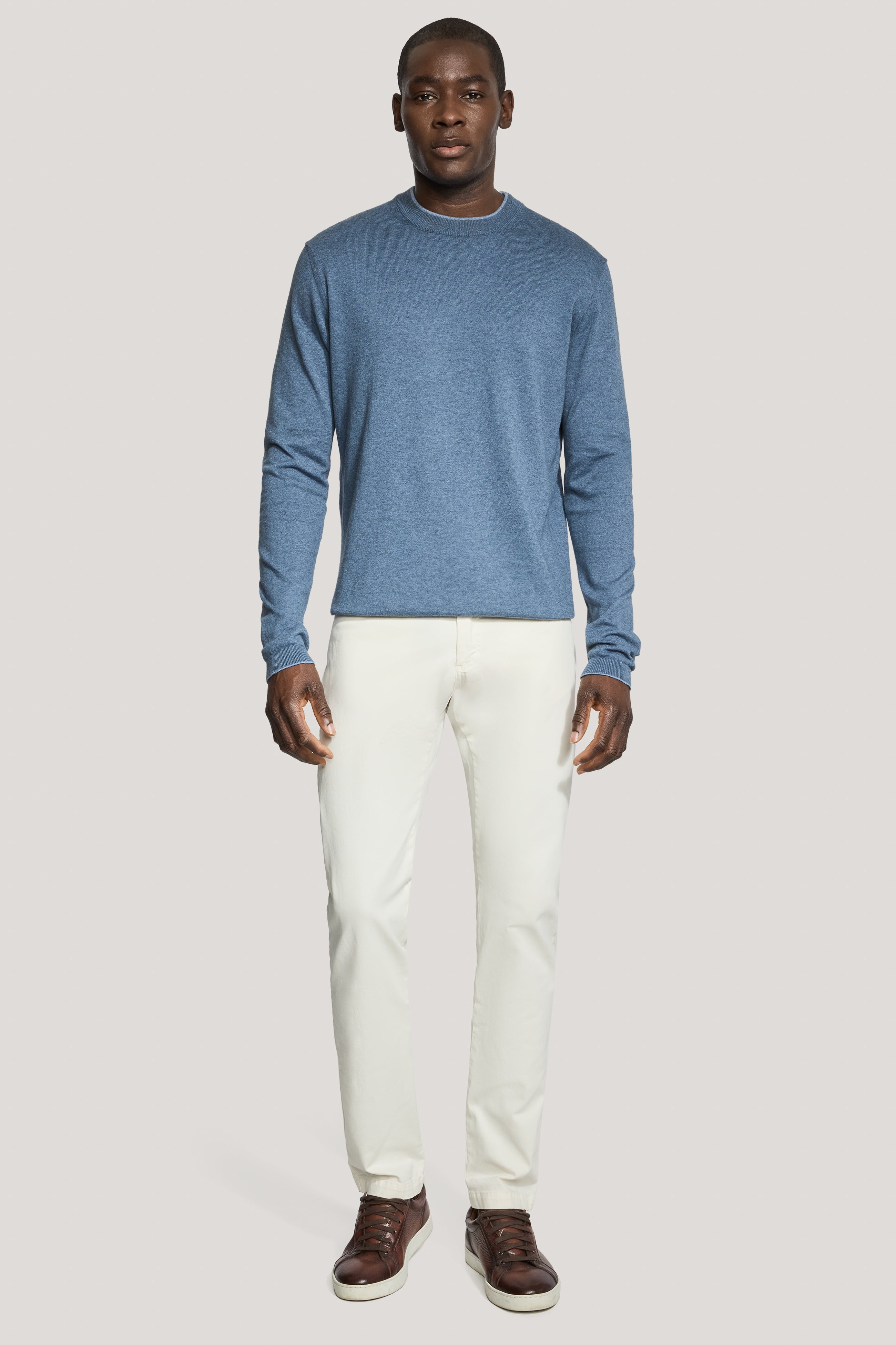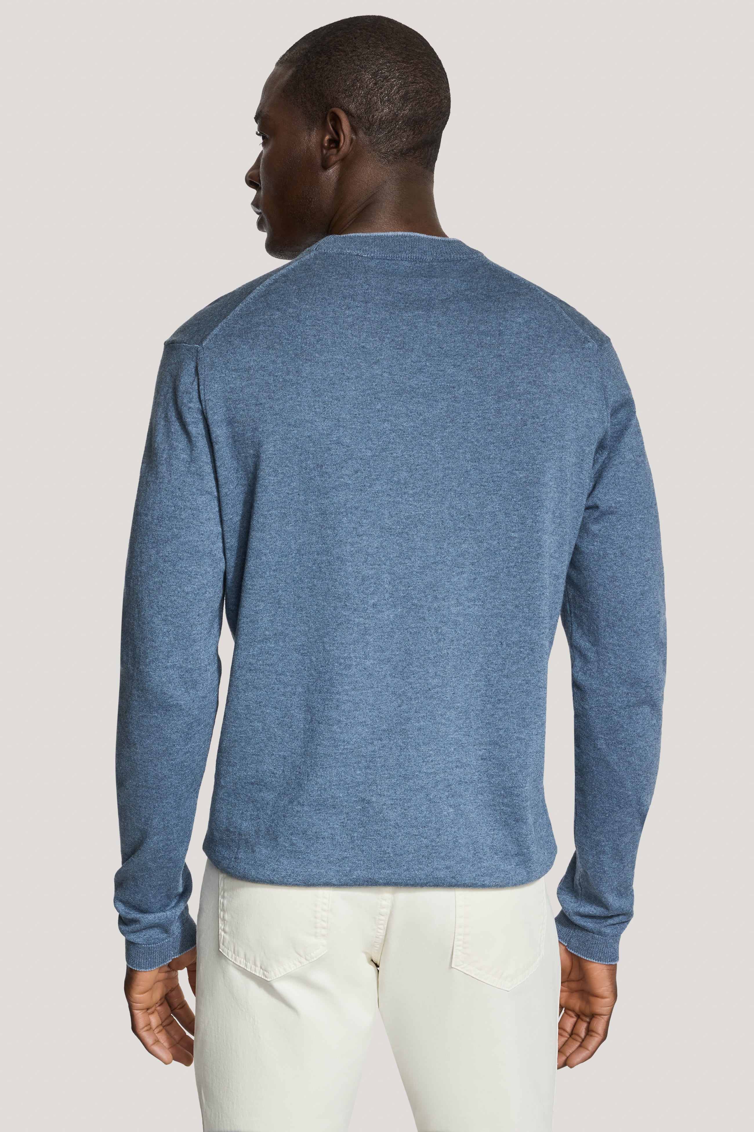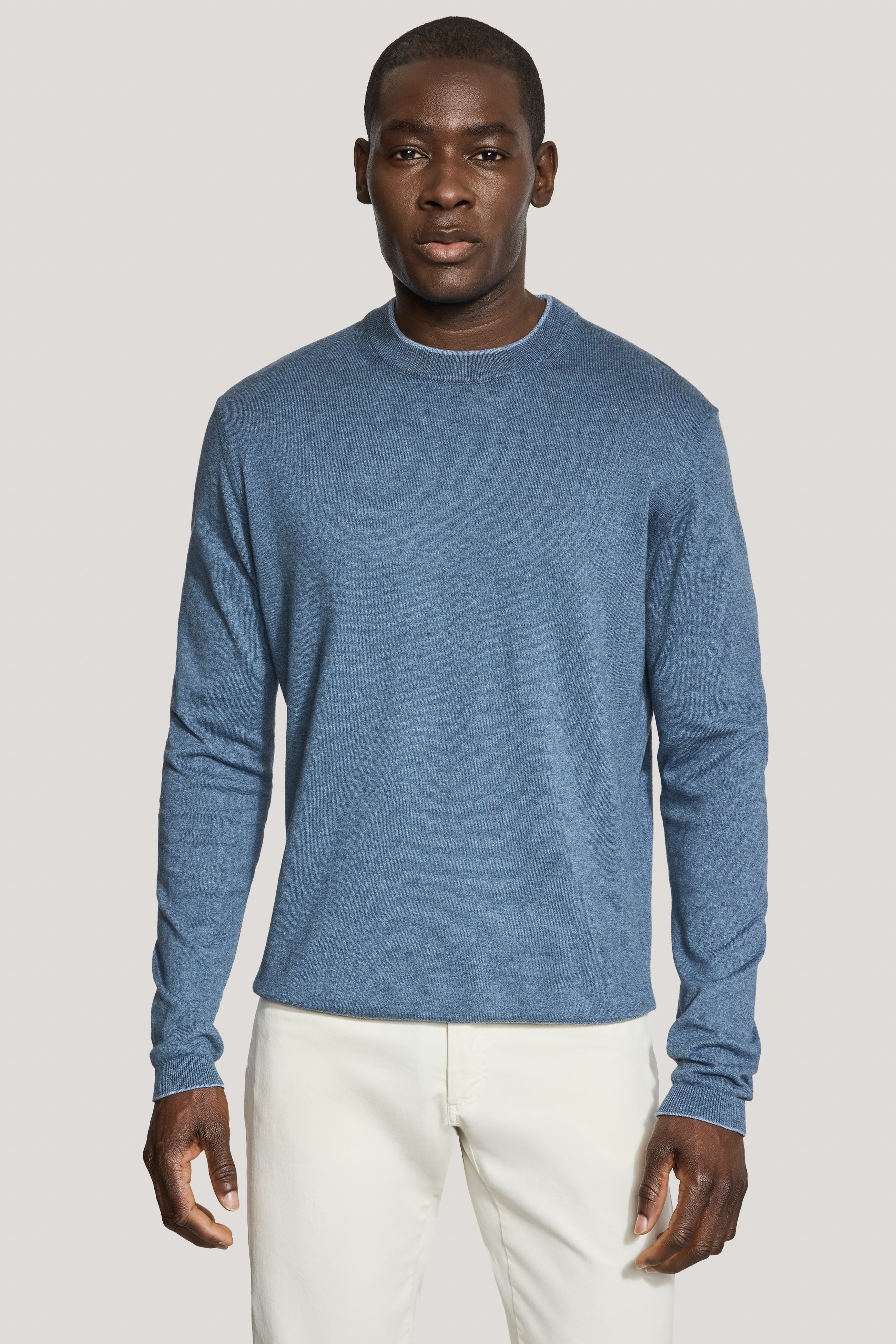 The timeless style and unmatched comfort of the long sleeve crew, crafted from premium combed cotton for a luxuriously soft, zero-pill finish. Featuring contrast tipping for a refined touch, a classic crew neck collar, and a 14 gauge knit for lightweight warmth, this sweater is versatile as it is elegant.