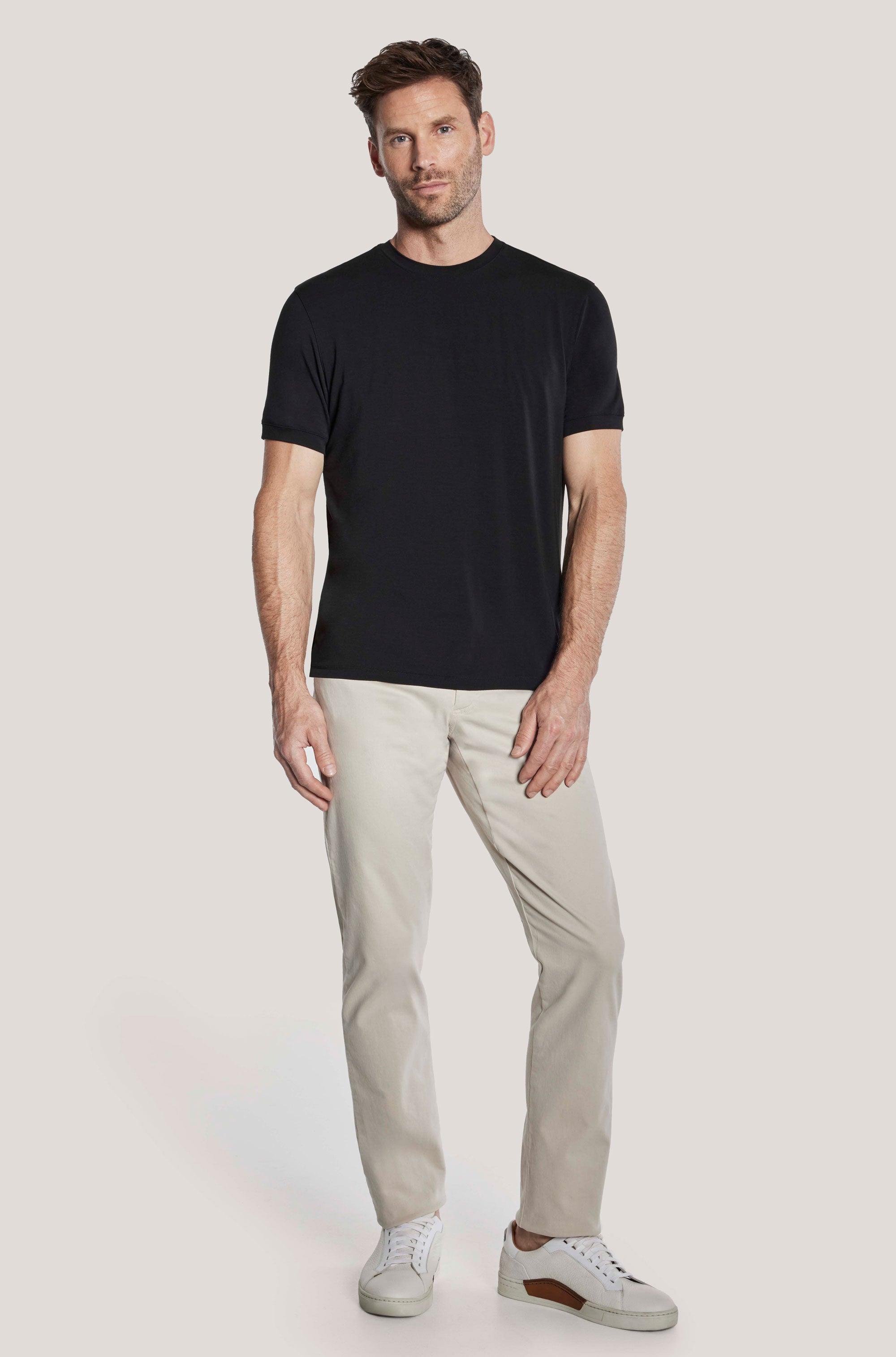 Introducing the first T-shirt in our collection, expertly made in Italy and crafted from a soft, breathable blend of 95% viscose and 5% elastane for a smooth hand and comfortable stretch. Designed in a contemporary fit, it features self-fabric detailing at the neck, cuff, and hem, along with single-needle stitching for a clean, elevated finish. With a set-in shoulder and solid color design, this versatile piece can be effortlessly dressed up or down, making it a refined essential for year-round wear.