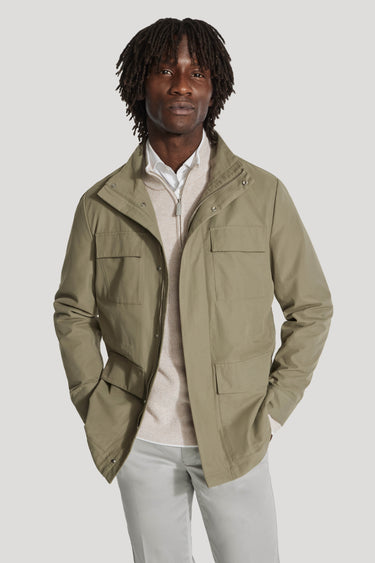 The Jonte is a field jacket part of the Elements capsule, a curated collection designed for cool or rainy days, that combines functionality with a sophisticated look. Designed for both style and function, this coat is crafted from an Italian-made water-repellent fabric, featuring hidden snaps, with an adjustable hidden elastic cord at the waist, and a convenient interior cellphone pocket. The hidden snaps on the patch pockets and rugged peach finish of the fabric add to its minimalist appeal while offering a sporty and sophisticated nonchalance.