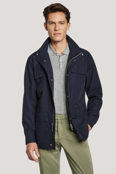 The Jonte is a field jacket part of the Elements capsule, a curated collection designed for cool or rainy days, that combines functionality with a sophisticated look. Designed for both style and function, this coat is crafted from an Italian-made water-repellent fabric, featuring hidden snaps, with an adjustable hidden elastic cord at the waist, and a convenient interior cellphone pocket. The hidden snaps on the patch pockets and rugged peach finish of the fabric add to its minimalist appeal while offering a sporty and sophisticated nonchalance.
