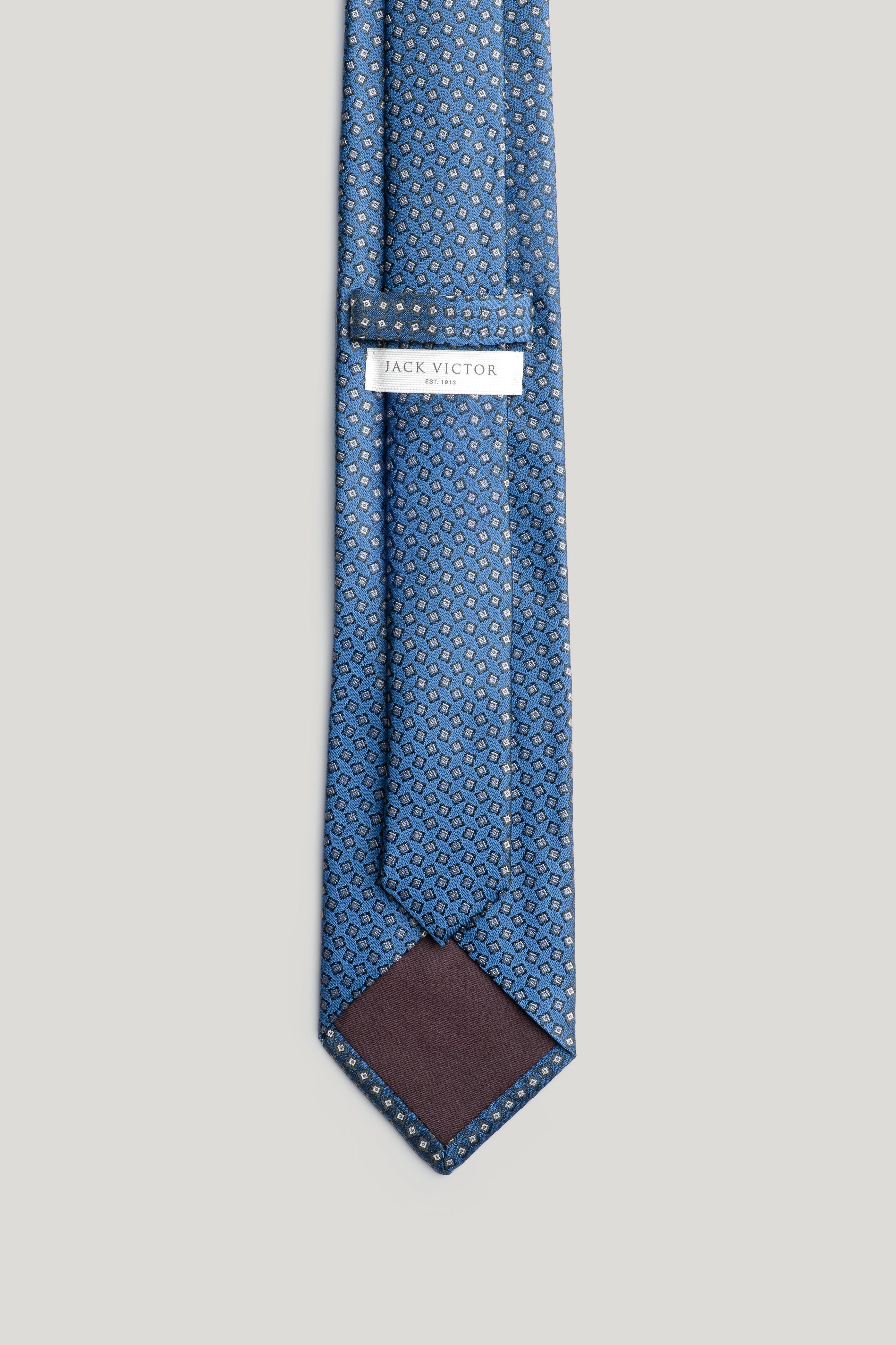 This tie is crafted from a beautiful silk and meticulously made in Italy. The delicate geometric pattern and rich color makes it the perfect complement to any ensemble.