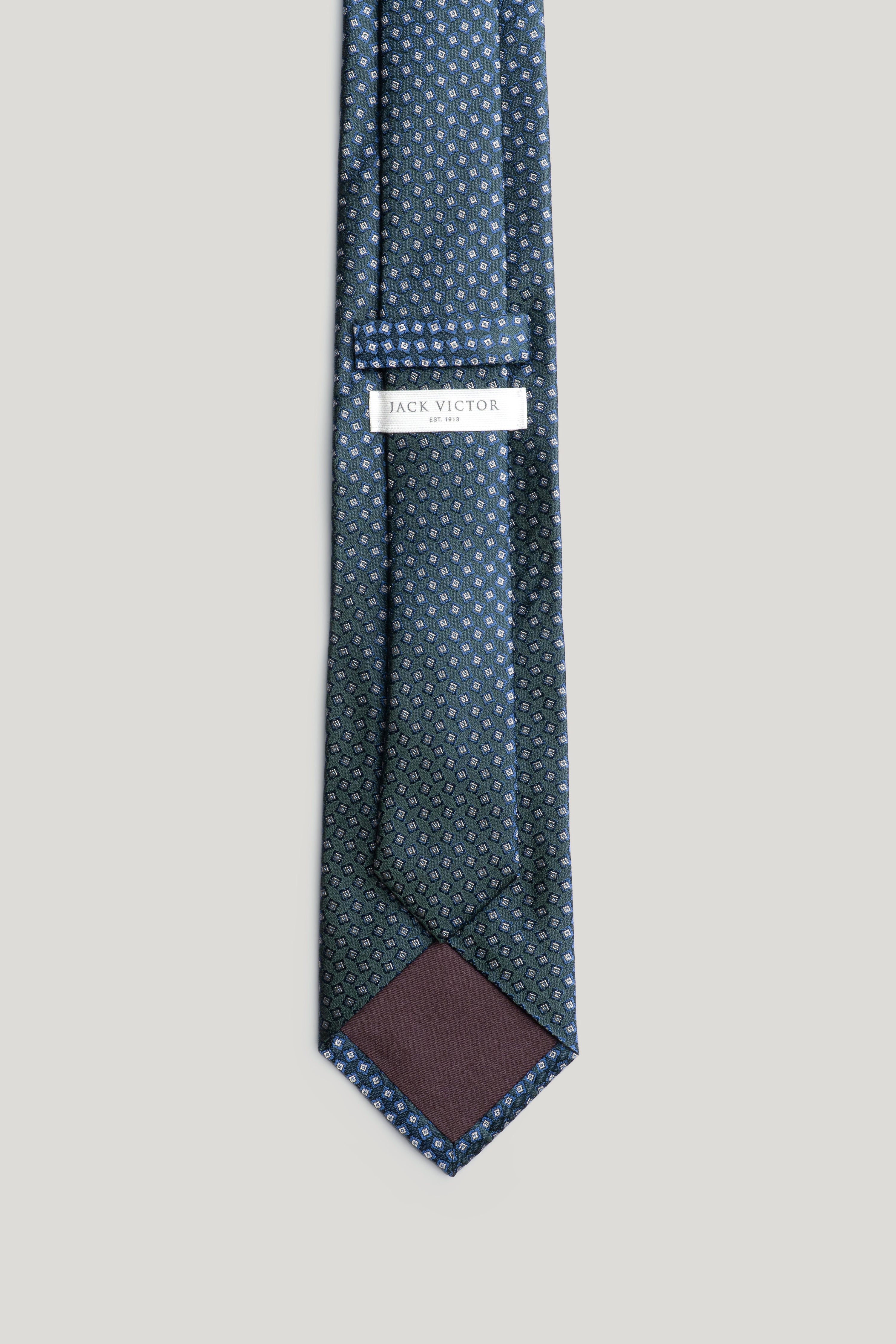 This tie is crafted from a beautiful silk and meticulously made in Italy. The delicate geometric pattern and rich color makes it the perfect complement to any ensemble.