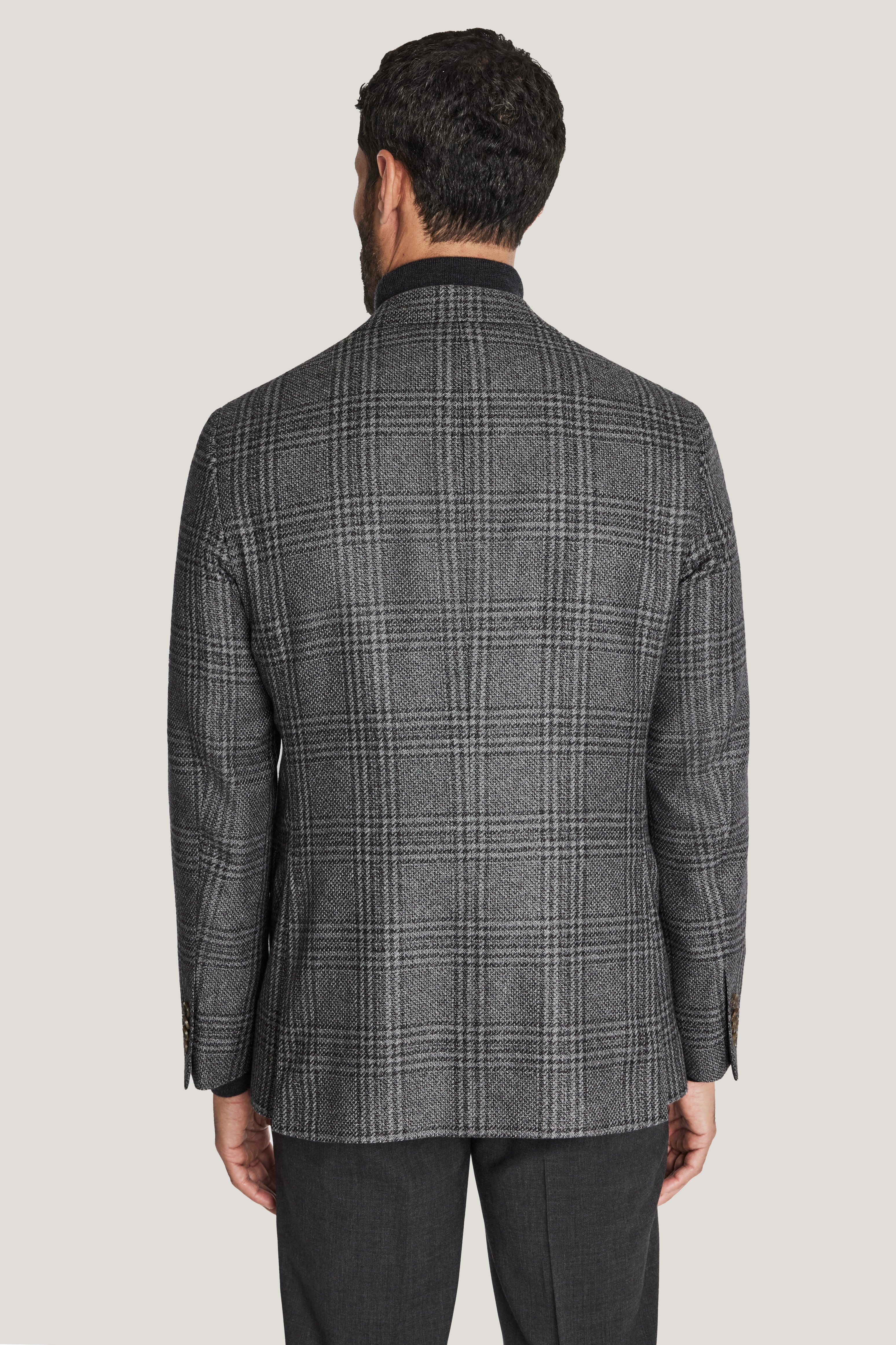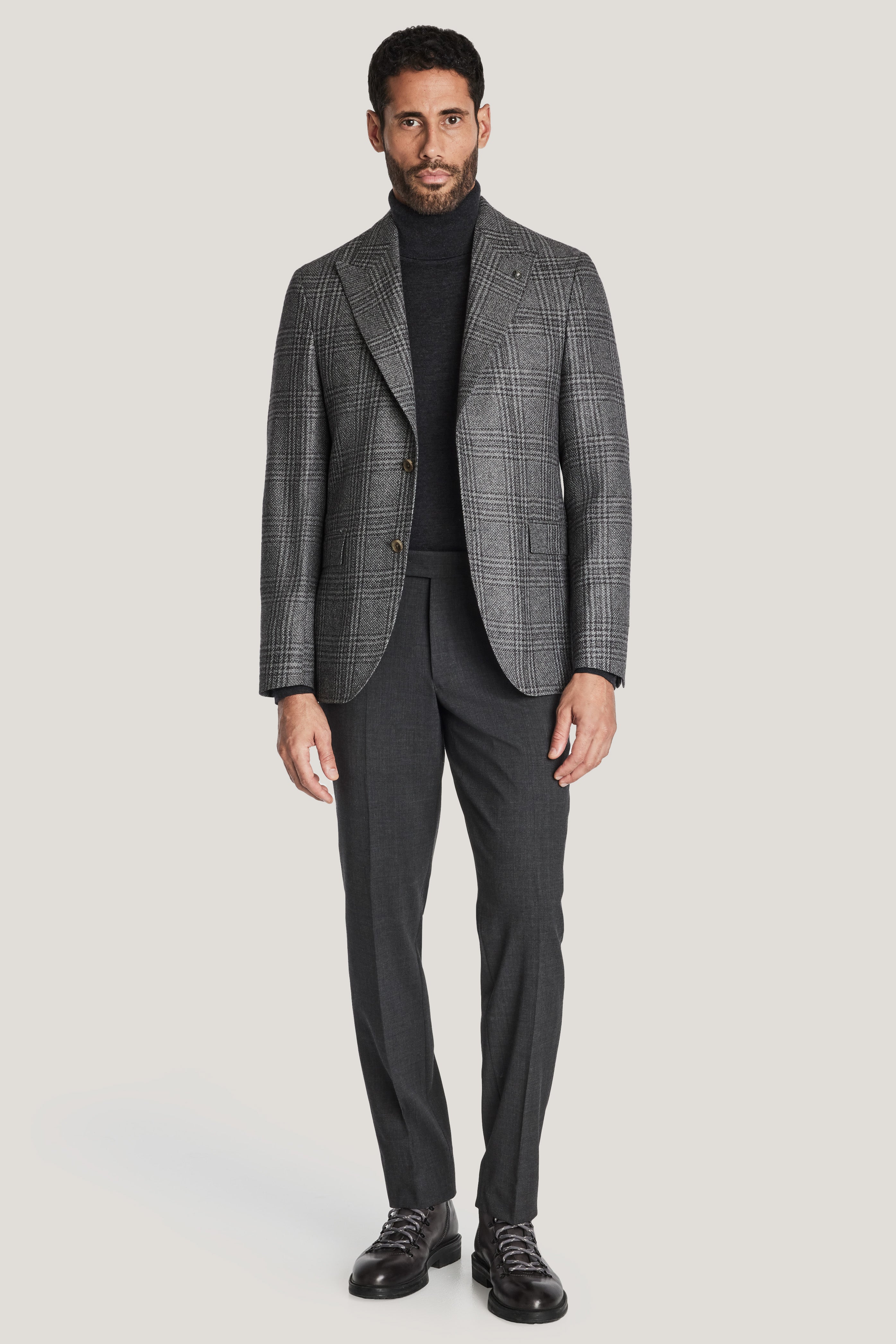 This Morgan blazer is crafted from a blend of cashmere and silk and features a navy plaid design. This sophisticated European look is available in our unconstructed Morgan model, a half-lined contemporary fit that is comfortable on the chest and shoulders and has a tapered waistline.
