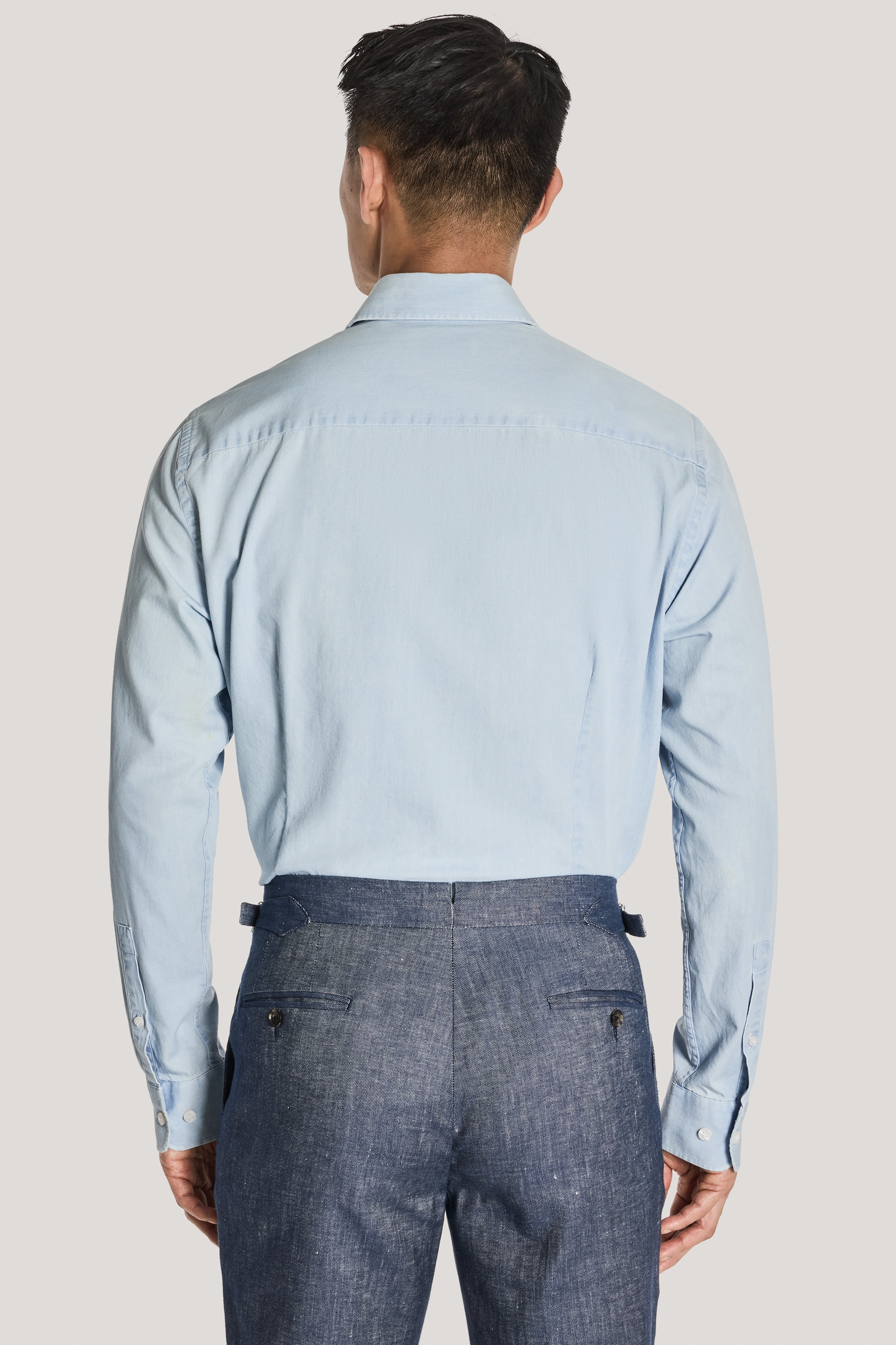 Elegantly crafted from light-washed denim cotton, this long-sleeve shirt is adorned with the subtle sophistication of JV monogram embroidery. A refined piece that effortlessly combines timeless style with exceptional craftsmanship.